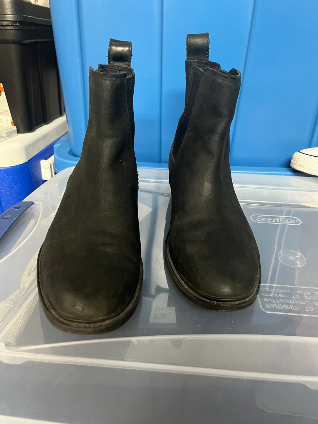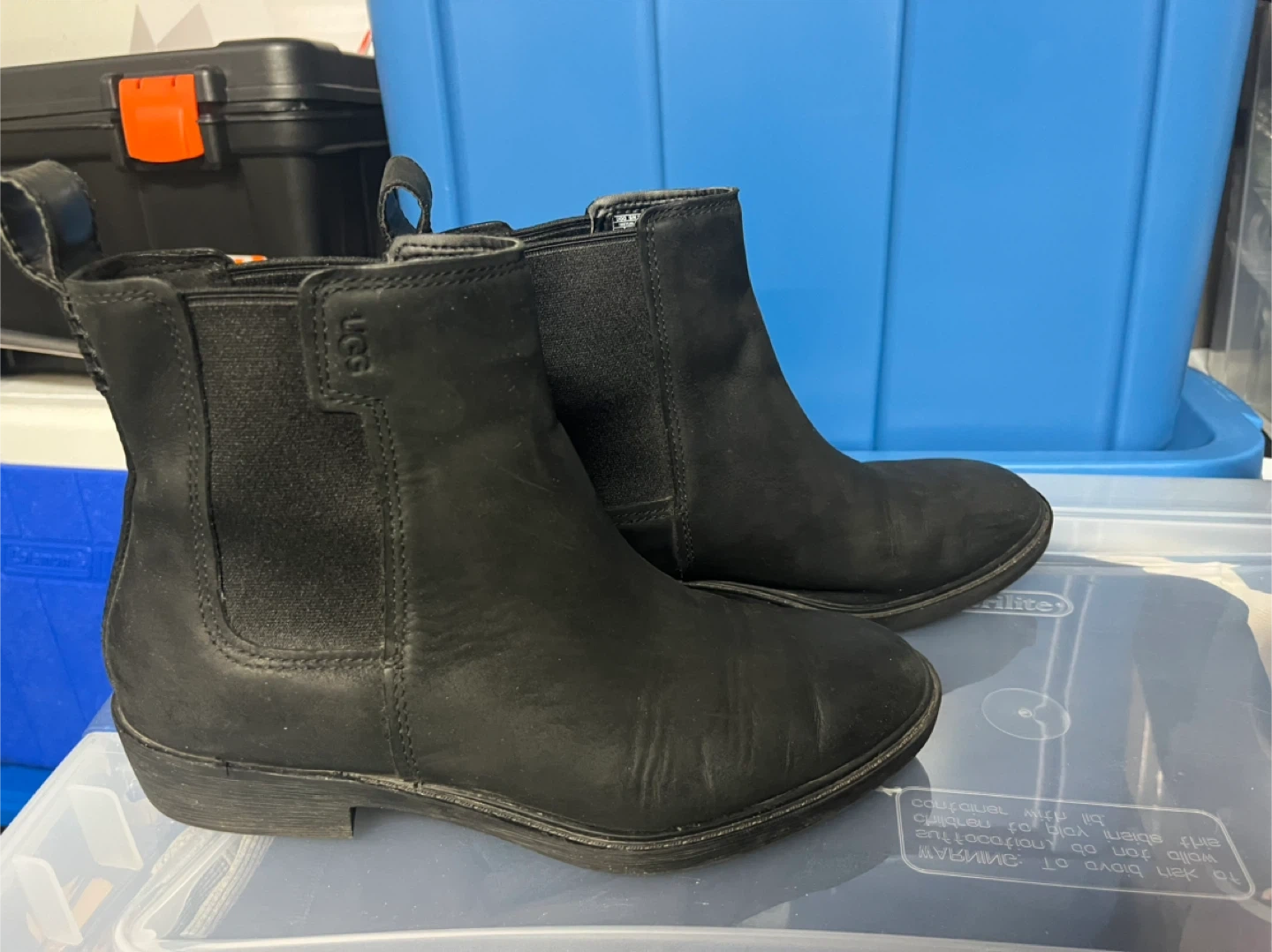 Selling a pair of UGG Chelsea boots in black leather. They're in good condition, hardly worn. Size 7