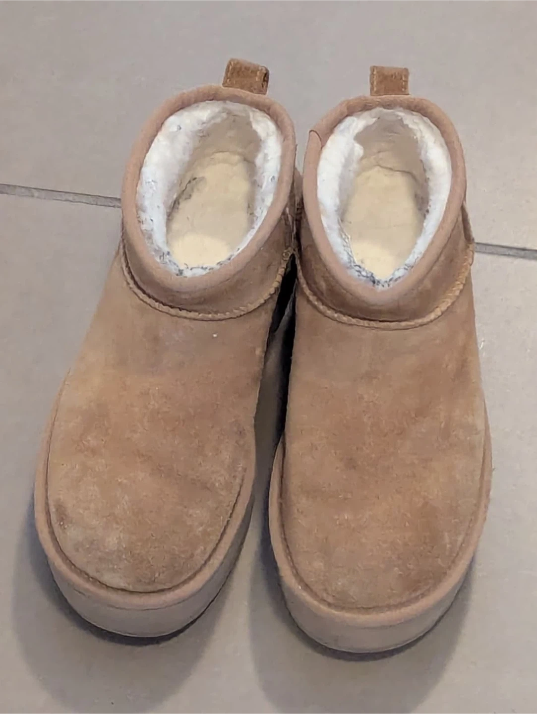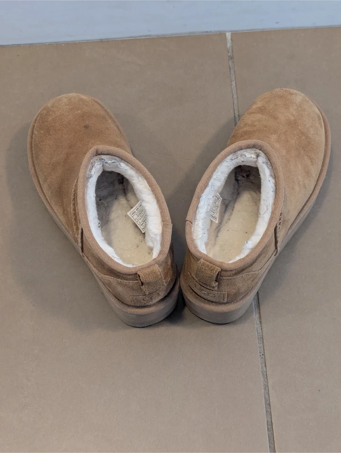 Selling a pair of Ugg boots in Tan. These are a women's size 6. They are in good condition and ready for a new home!