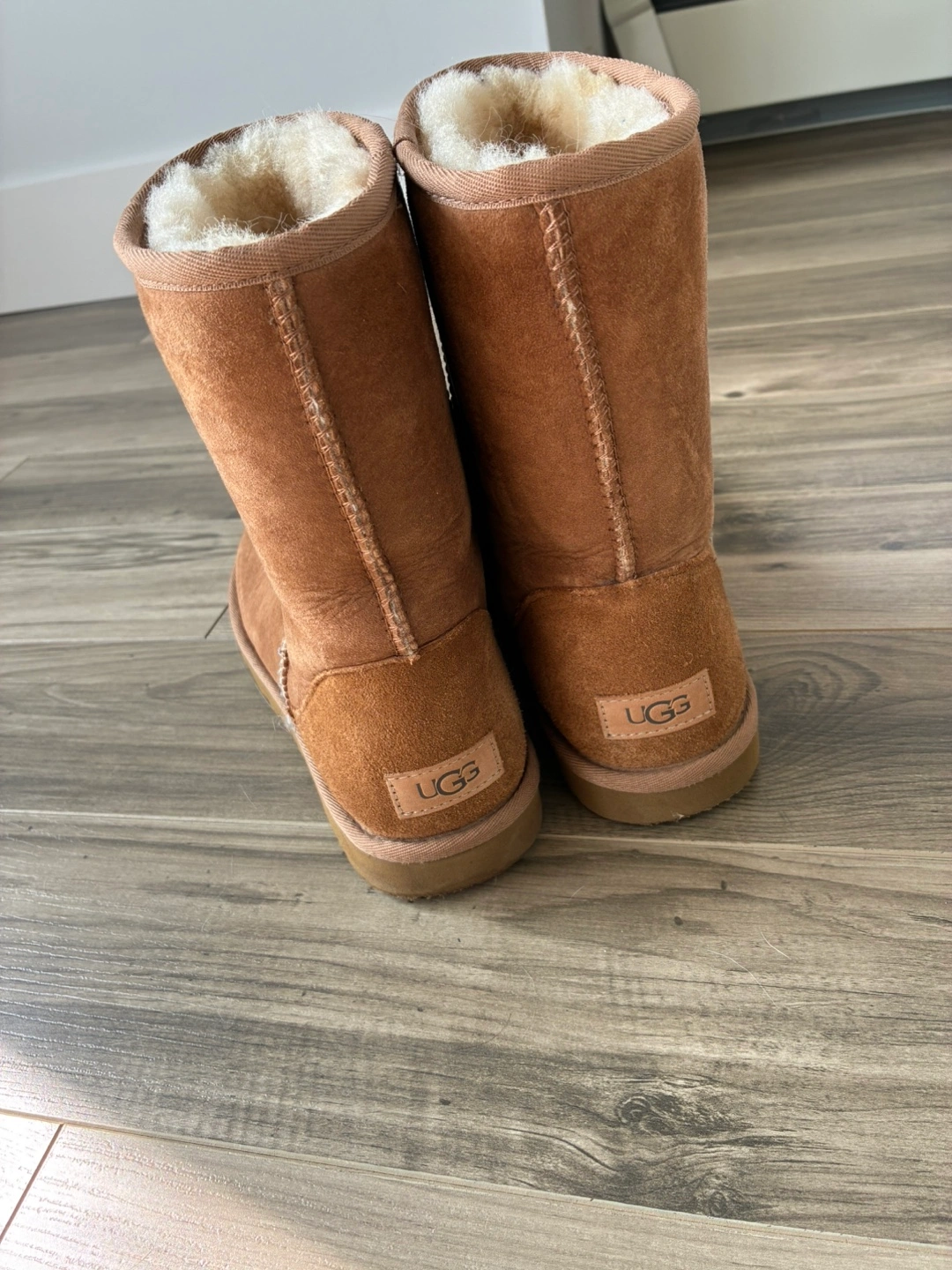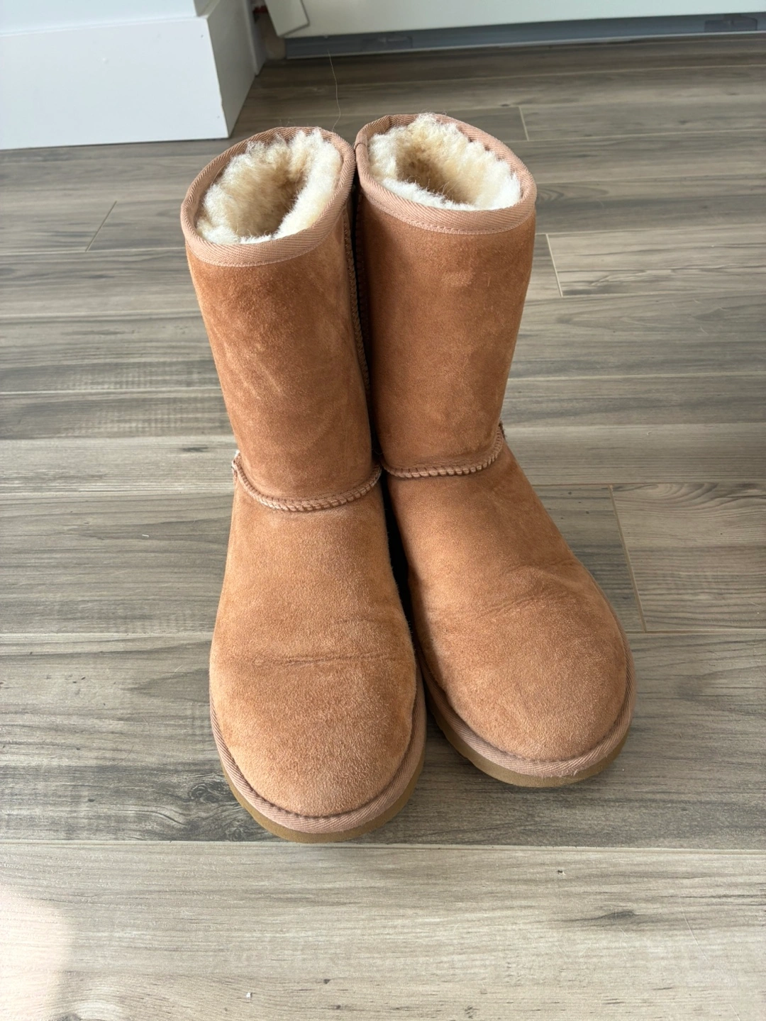 Cozy up with these UGG Classic Short II boots in a lovely chestnut brown! They’re a size UK 8 and ready to keep your feet warm and stylish all winter long. These are perfect for those chilly Canadian days! Original price is $190 selling for only $90.