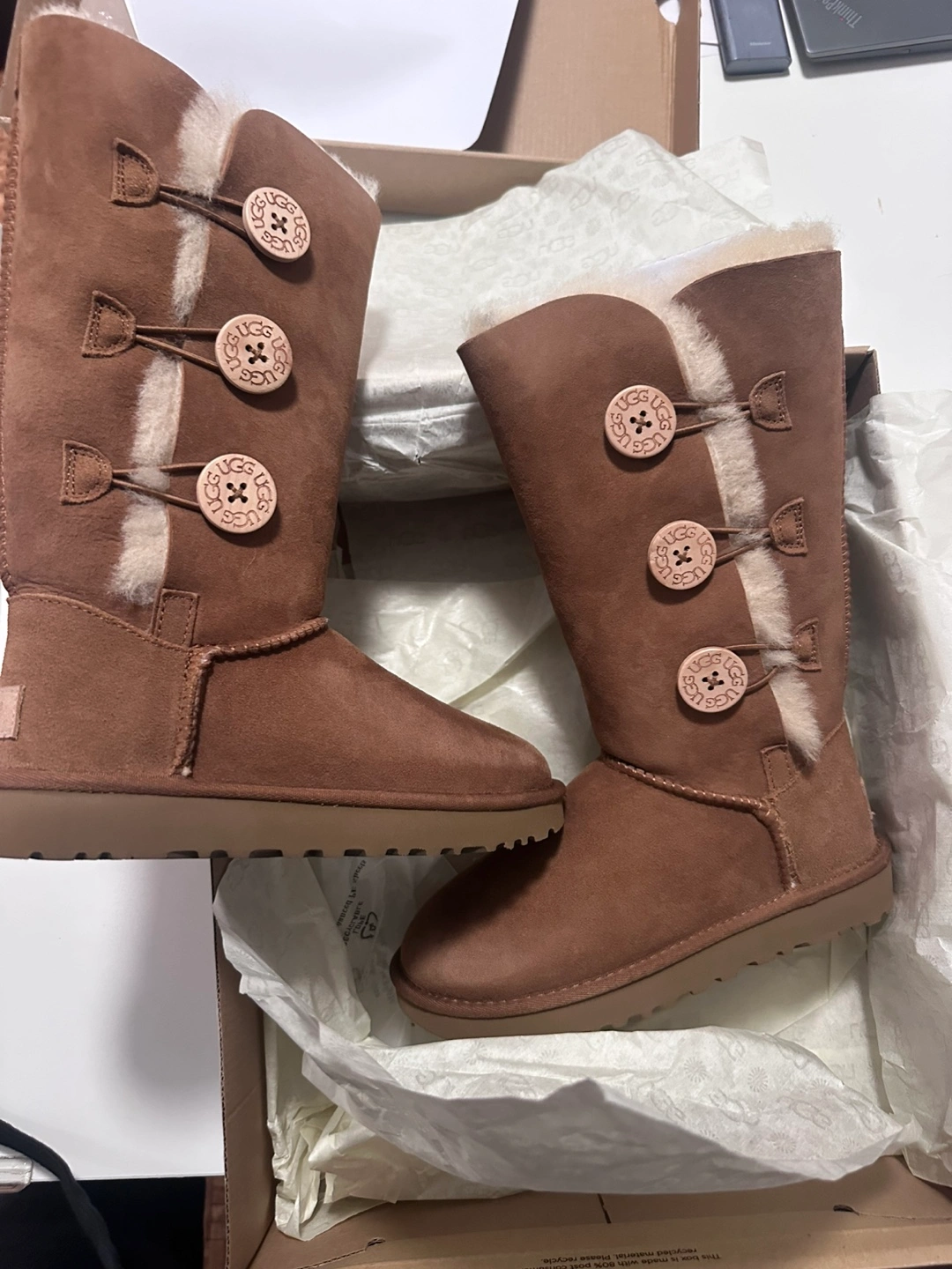 Brand new UGG woman’s Bailey Button Triplet li winter boot Features three signature UGG buttons. Comes in original box and packaging. Women's size 5B