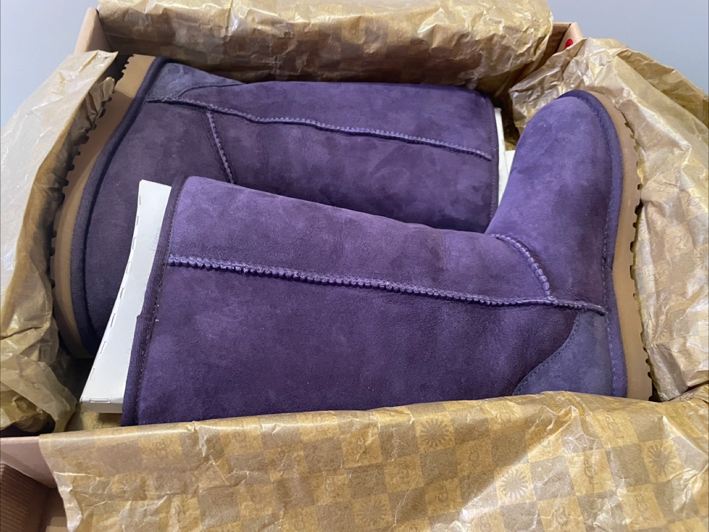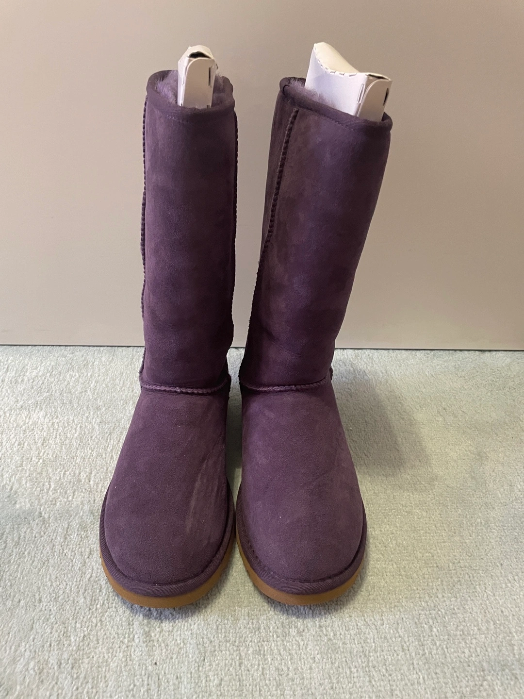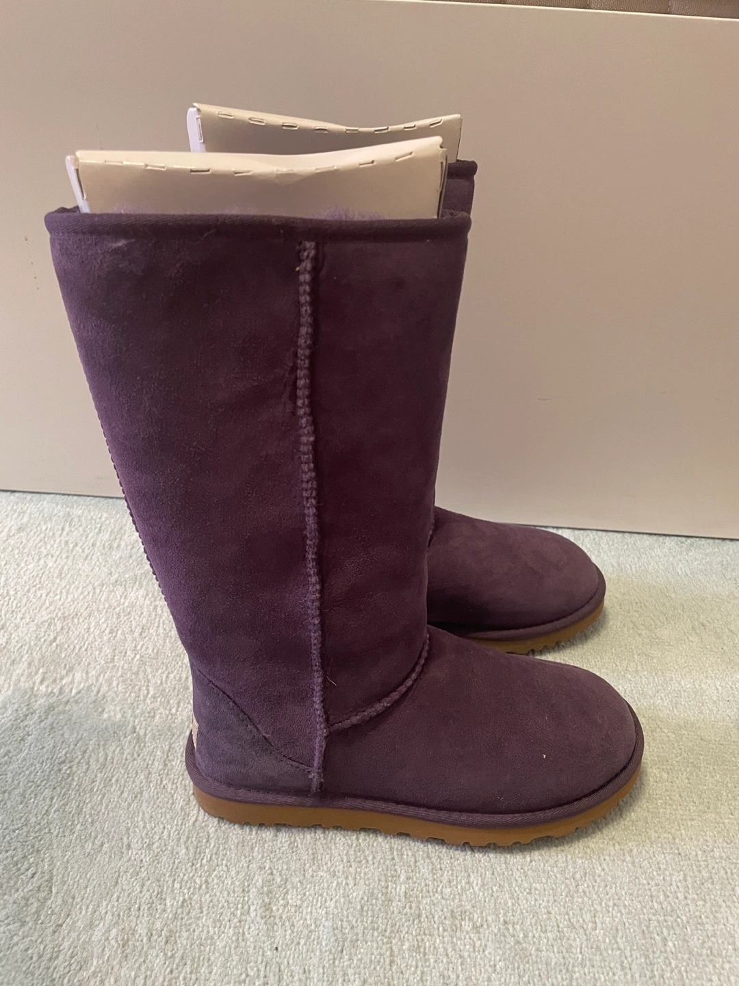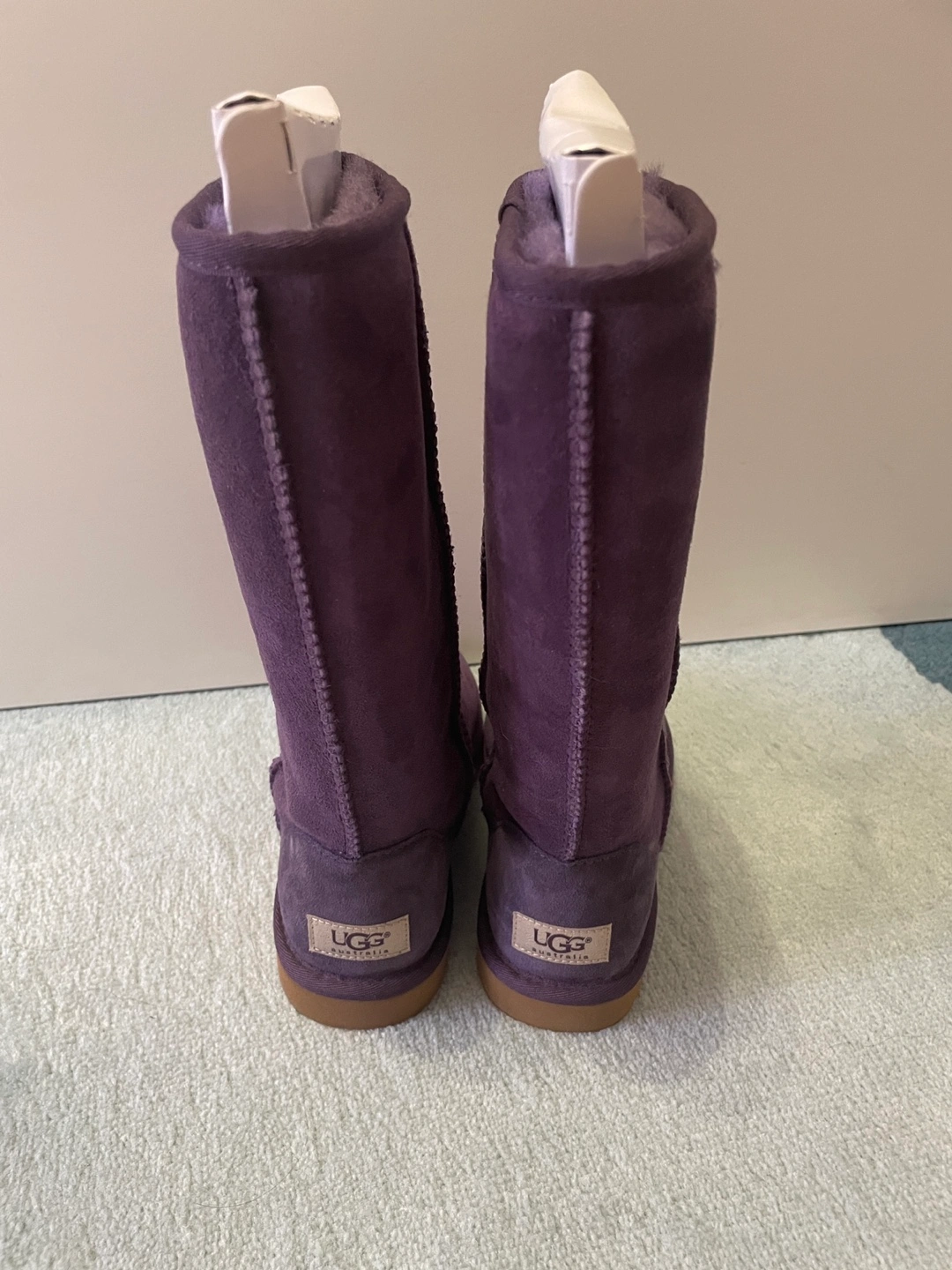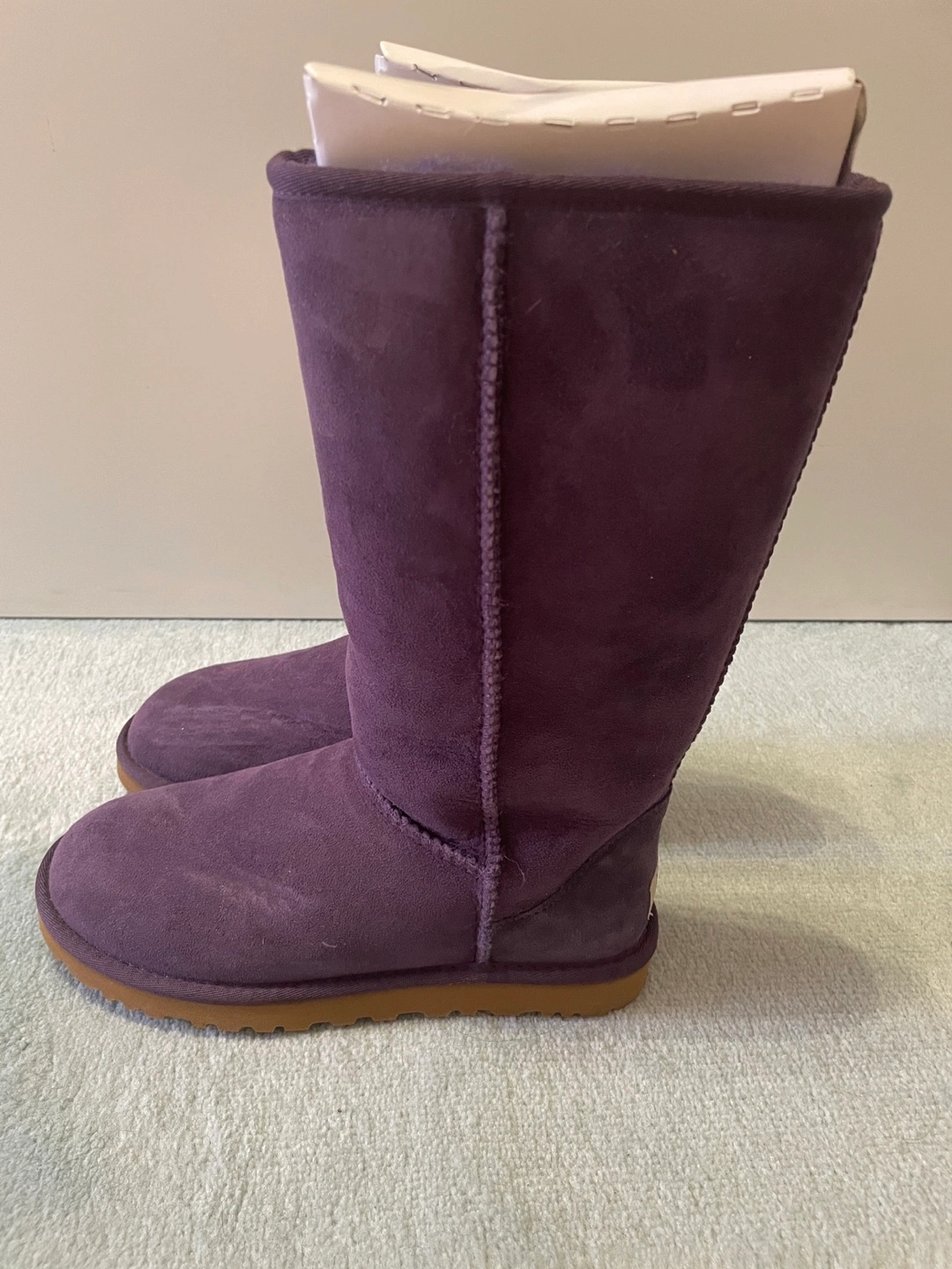 Selling a pair of UGG Classic Tall boots in a lovely purple colour! These are super cozy and perfect for the colder weather. They're in great shape and ready for a new home