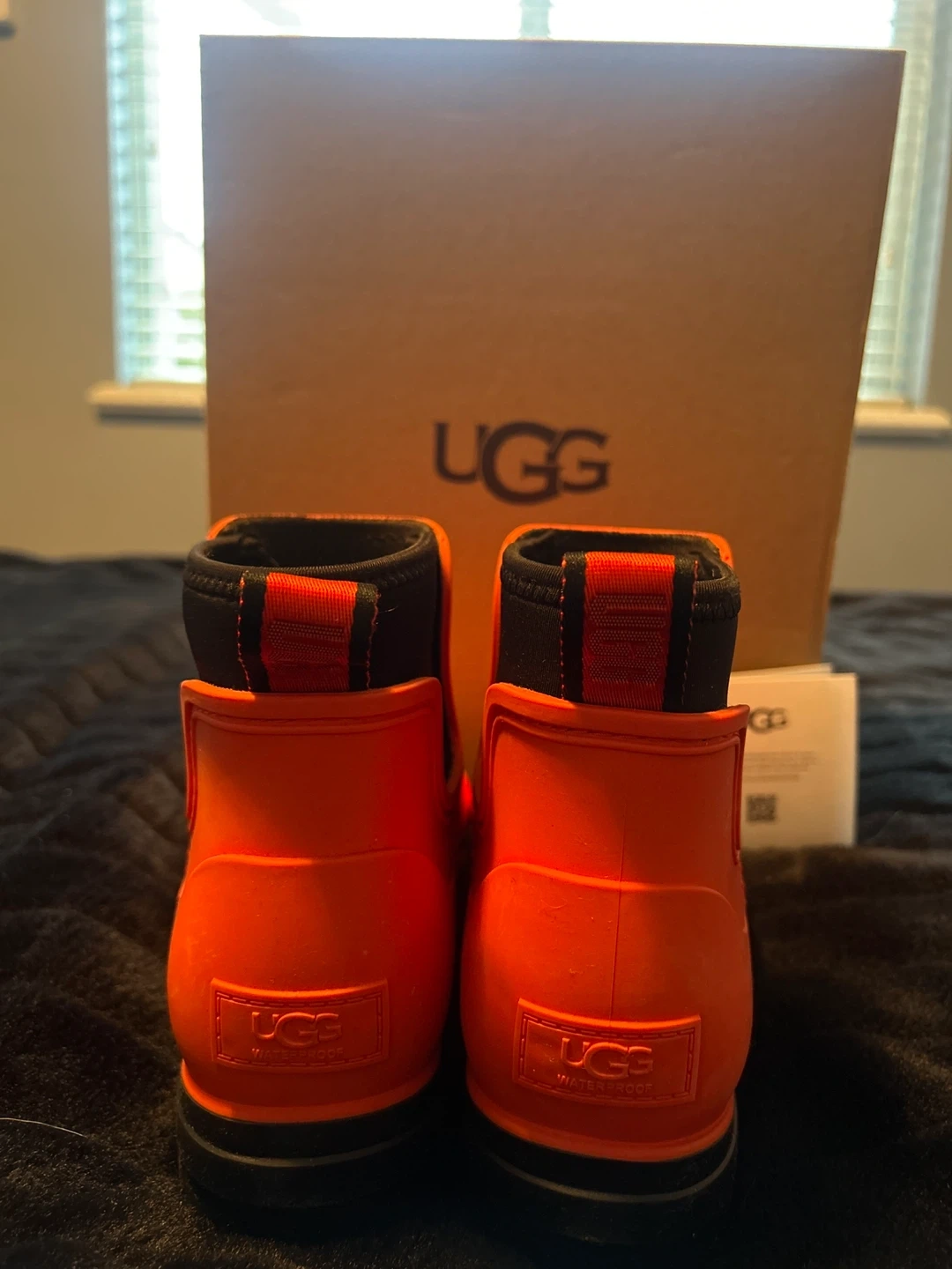 Selling a pair of UGG Drizlita rain boots in a vibrant orange colour! These are a women's size 8 and come with the original box. Perfect for keeping your feet dry and stylish on rainy days