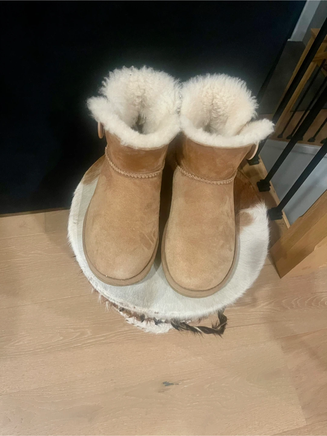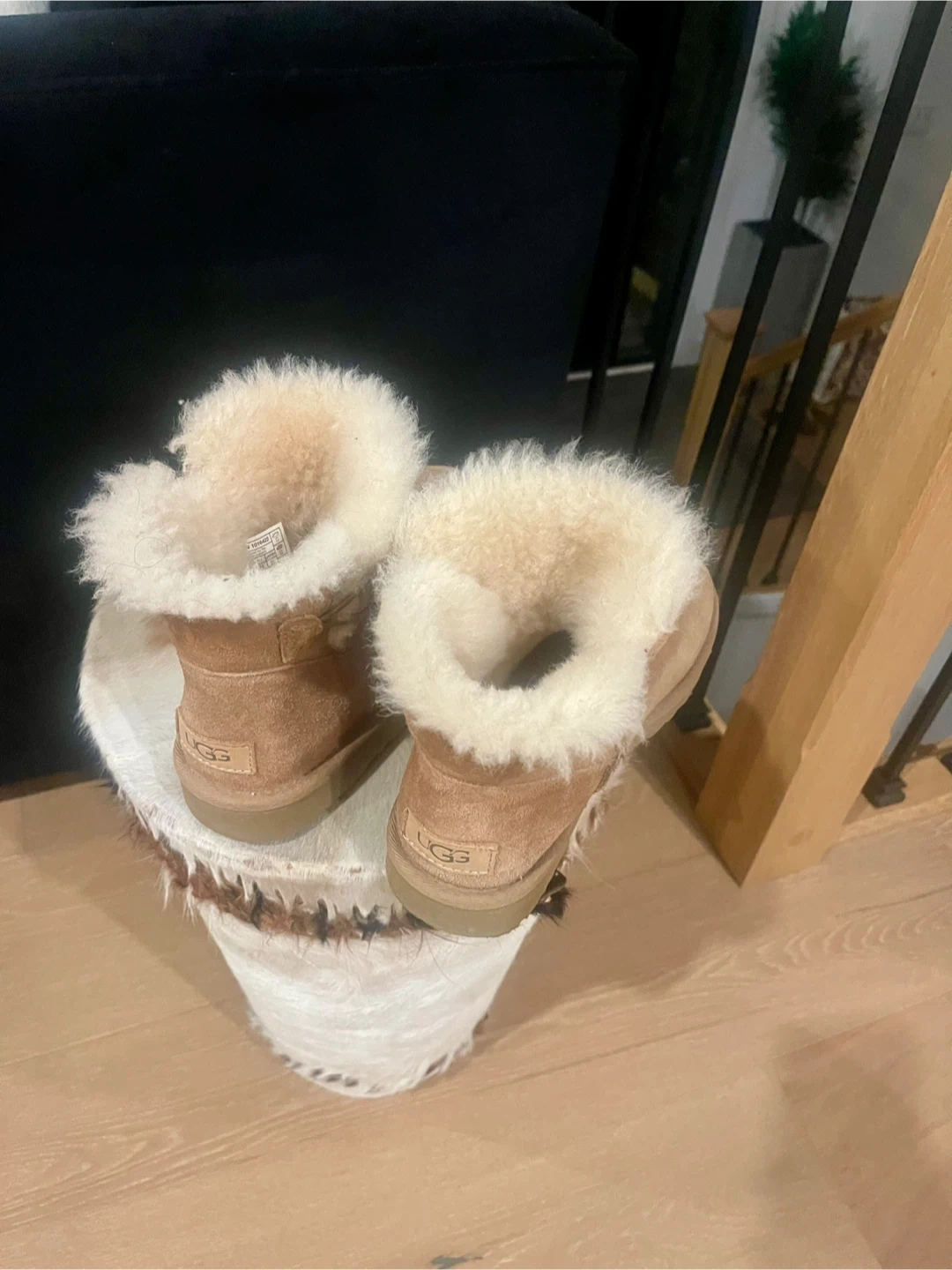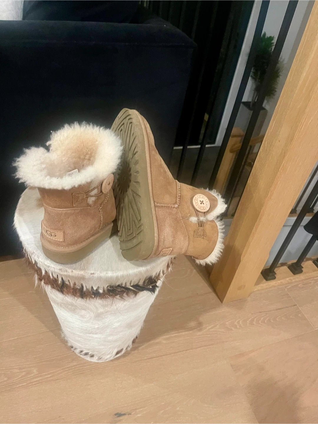 Selling a pair of UGG Kids' Classic Mini II boots in a size 5. These cute boots are perfect for keeping little feet warm and cozy during the colder months. They feature the classic UGG design with a soft sheepskin lining and a durable outsole. They're in great condition and ready for a new home!