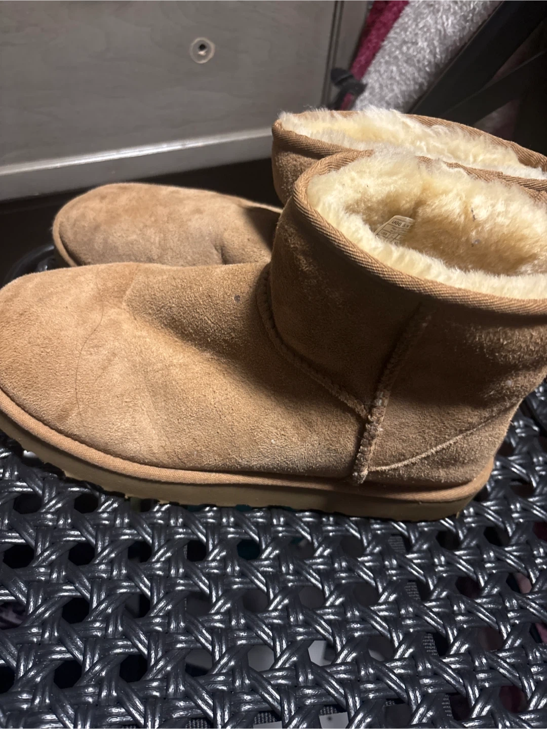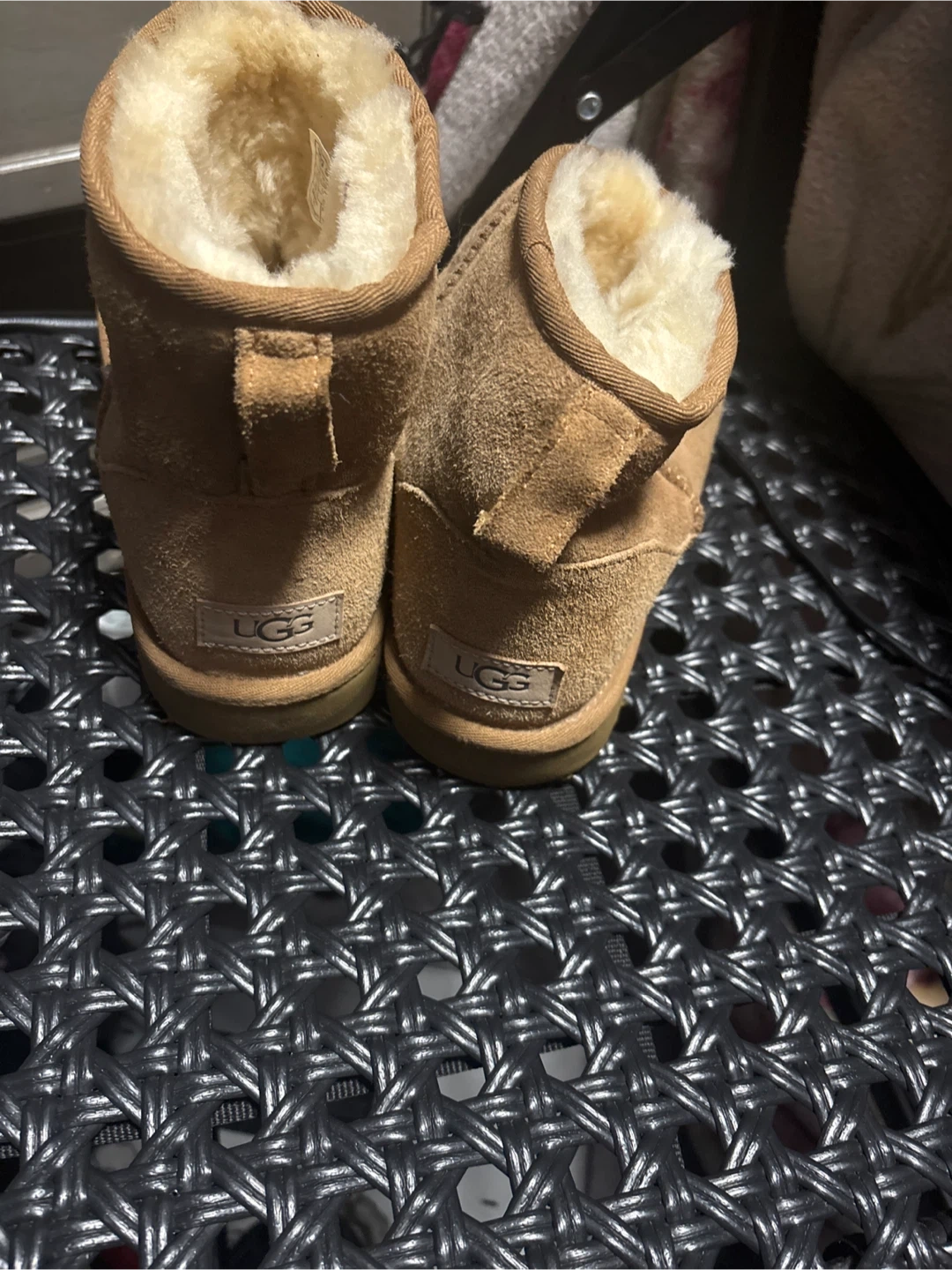 Selling a pair of UGG mini boots in a size 7. They are in good condition and perfect for keeping your feet warm and cozy during the colder months! The classic UGG style is always a great choice.