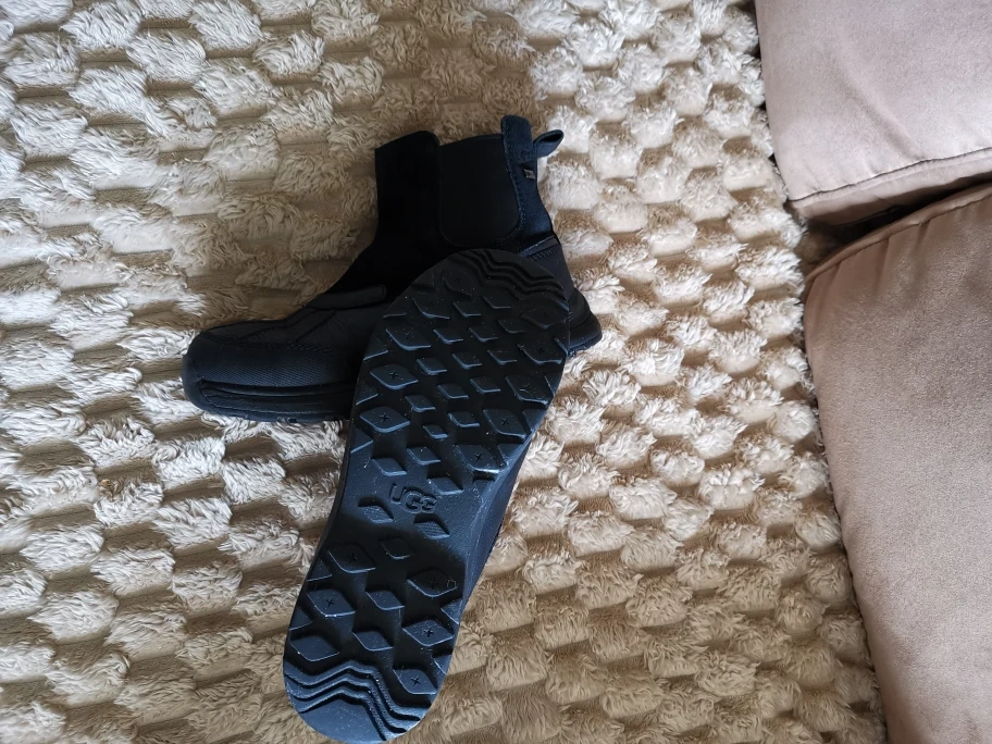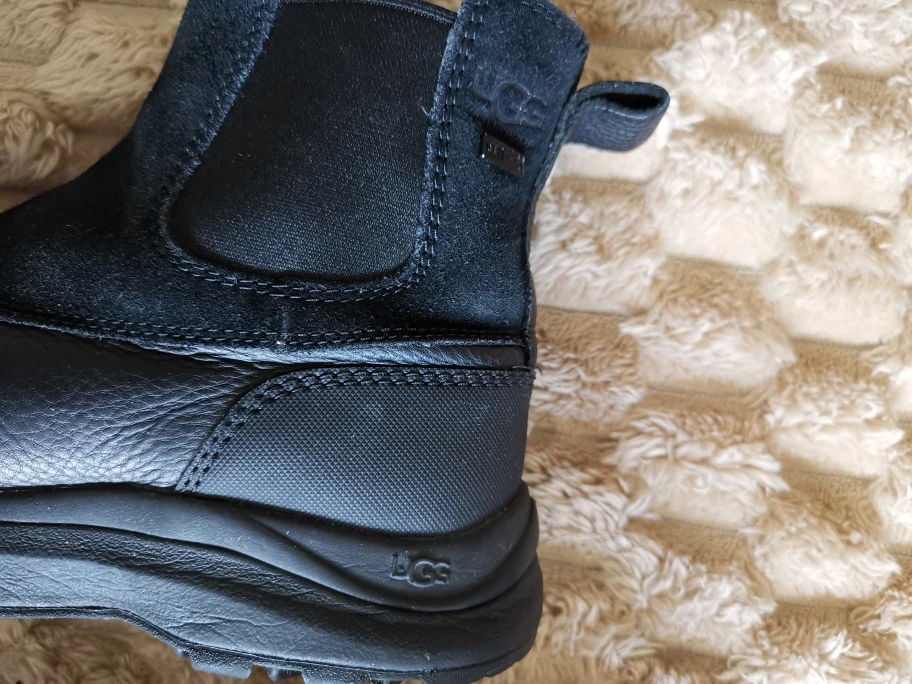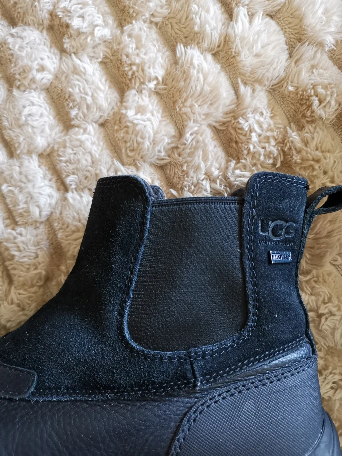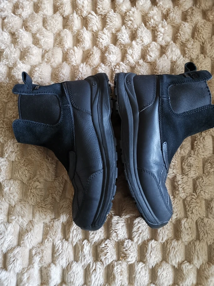Slightly used Pair of black UGG Neumel Chelsea boots. Leather and suede upper. Very Good condition. Durable rubber sole. Comfortable and stylish. Found tight for me after using it and couldn't change