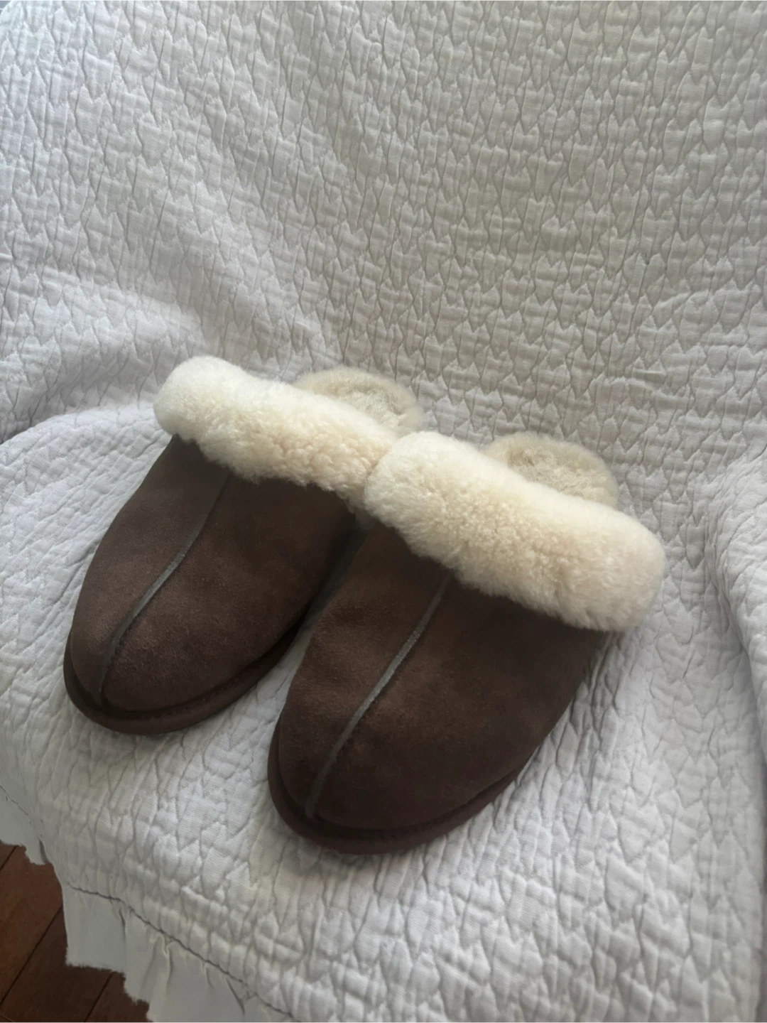 Cozy UGG Coquette slippers in a beautiful brown colour! These size 7 slippers are in great condition and ready to keep your feet warm and comfy. Perfect for lounging around the house!