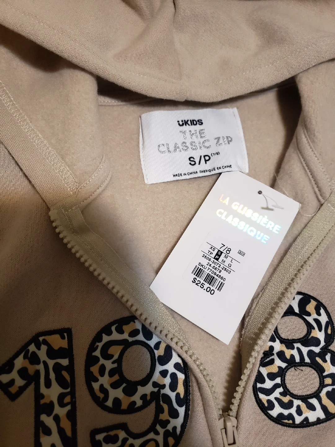 Selling a UKIDS 'The Classic Zip' hoodie in size S/P (7/8) The original price was $25.00. Perfect for keeping your little one cozy and stylish for the fall weather.