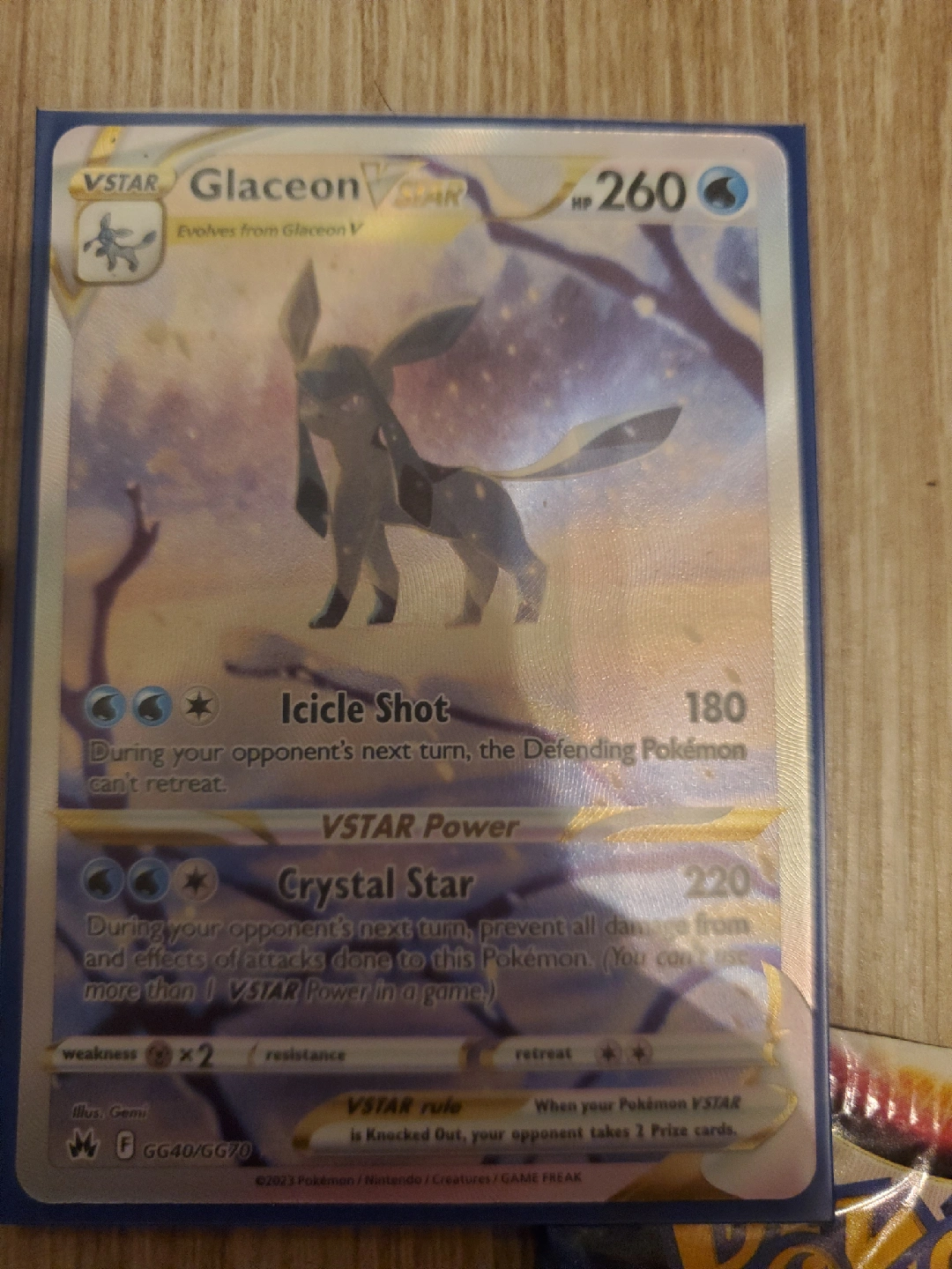 Selling a Glaceon VSTAR Pokemon card. Flawless condition, in sleeve.