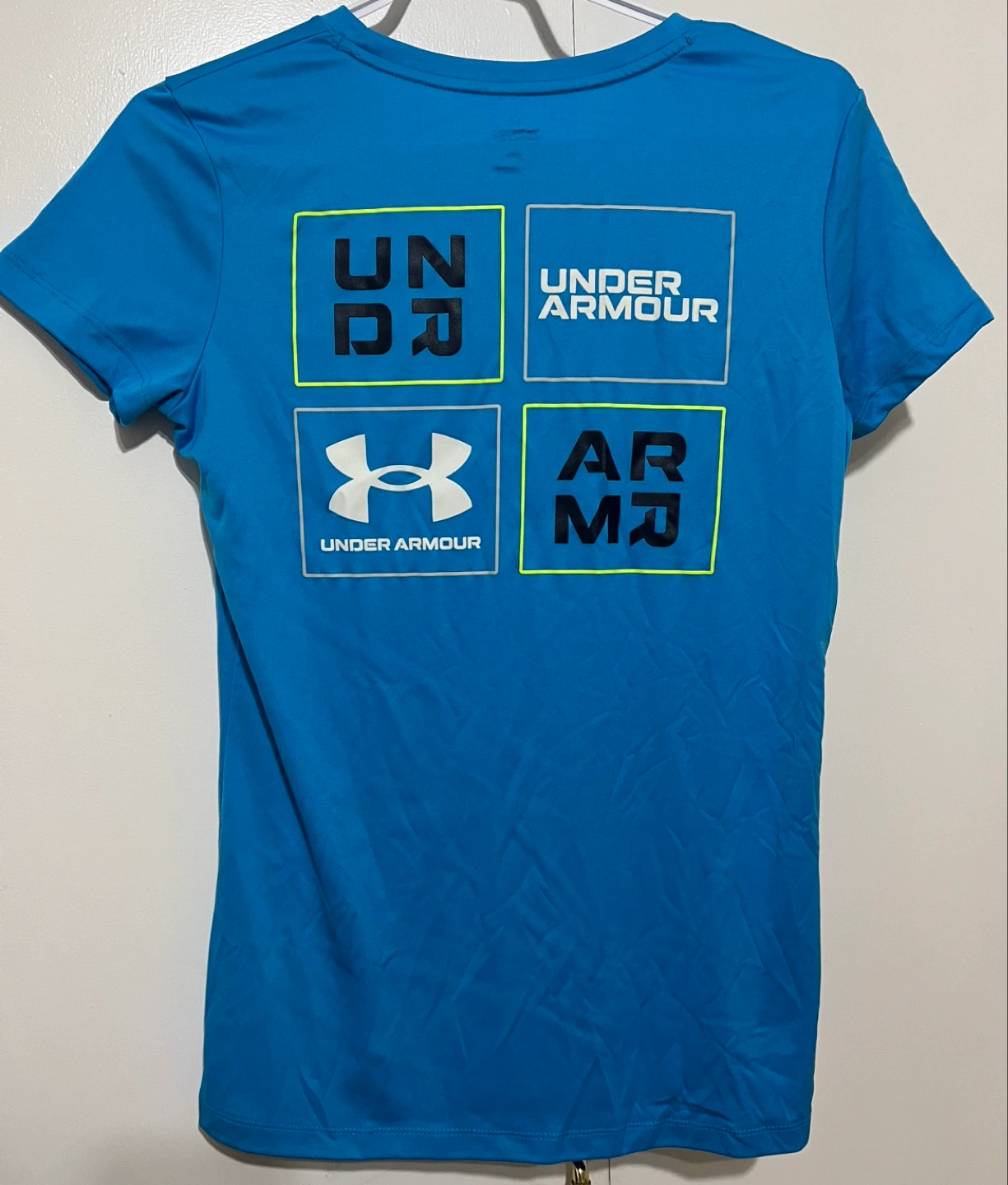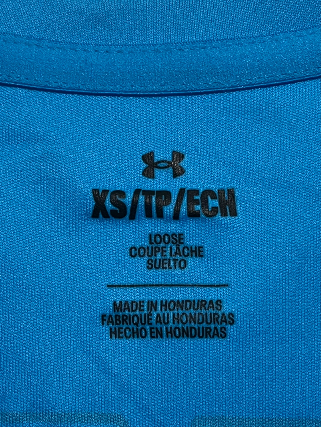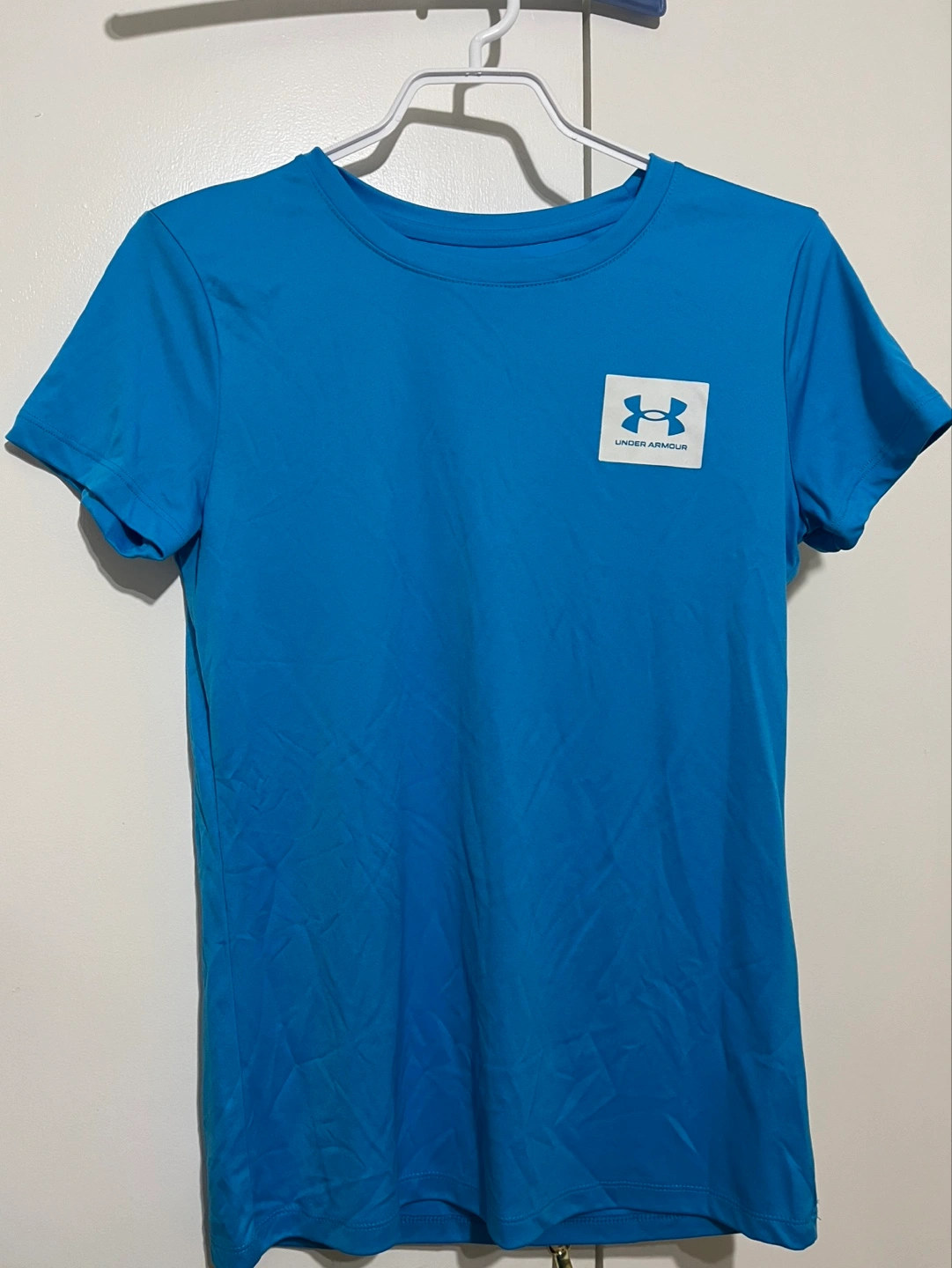 Selling a XS women’s blue Under Armour athletic t-shirt! It's in great condition, barely worn and ready for a new home! Great for physical activity or casual wear.