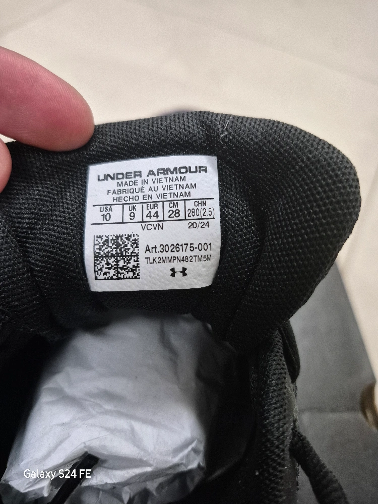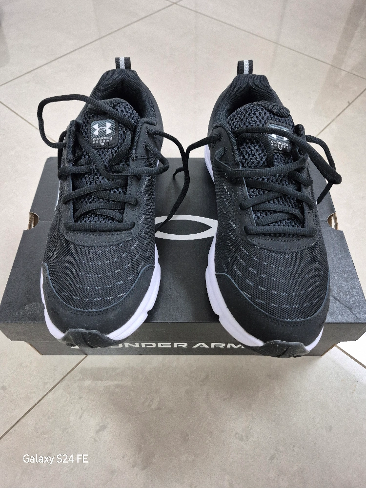 Selling a pair of Under Armour Charged Assert 9 running shoes in black. They are in great condition and come with the original box. The size is US 10 / UK 9 / EUR 44 / CM 28. Never used. brand new