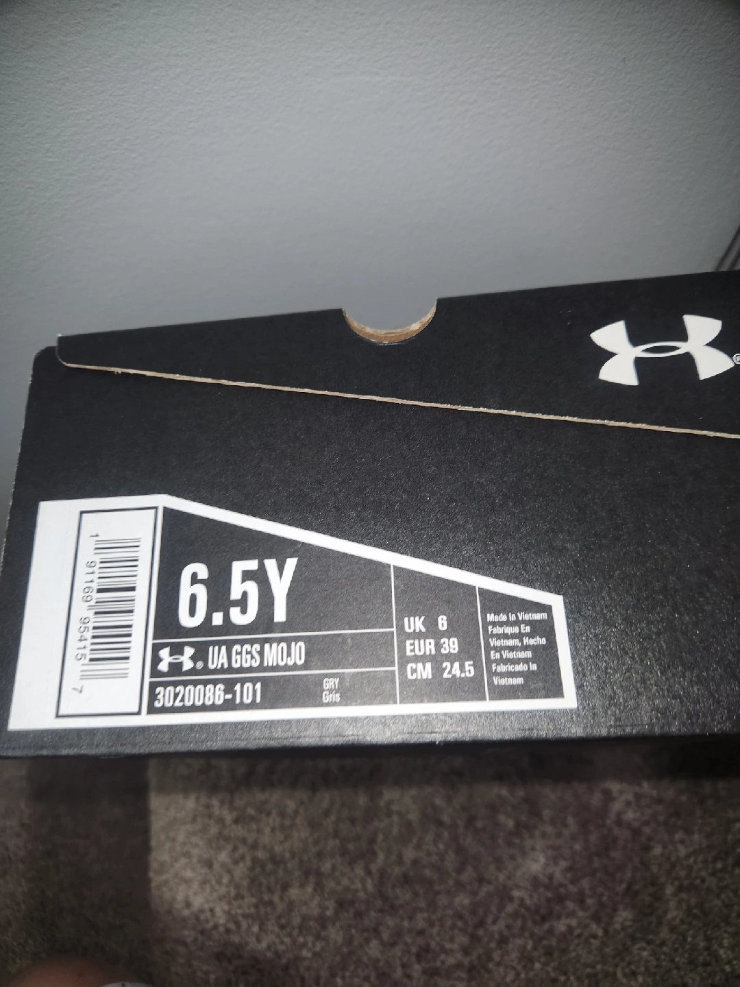 Selling a pair of Under Armour GGS Mojo sneakers in grey! They are brand new in box and ready for a new home. The size is 6.5Y (Youth). Comes from a smoke free home. Pick up at St. Albert.