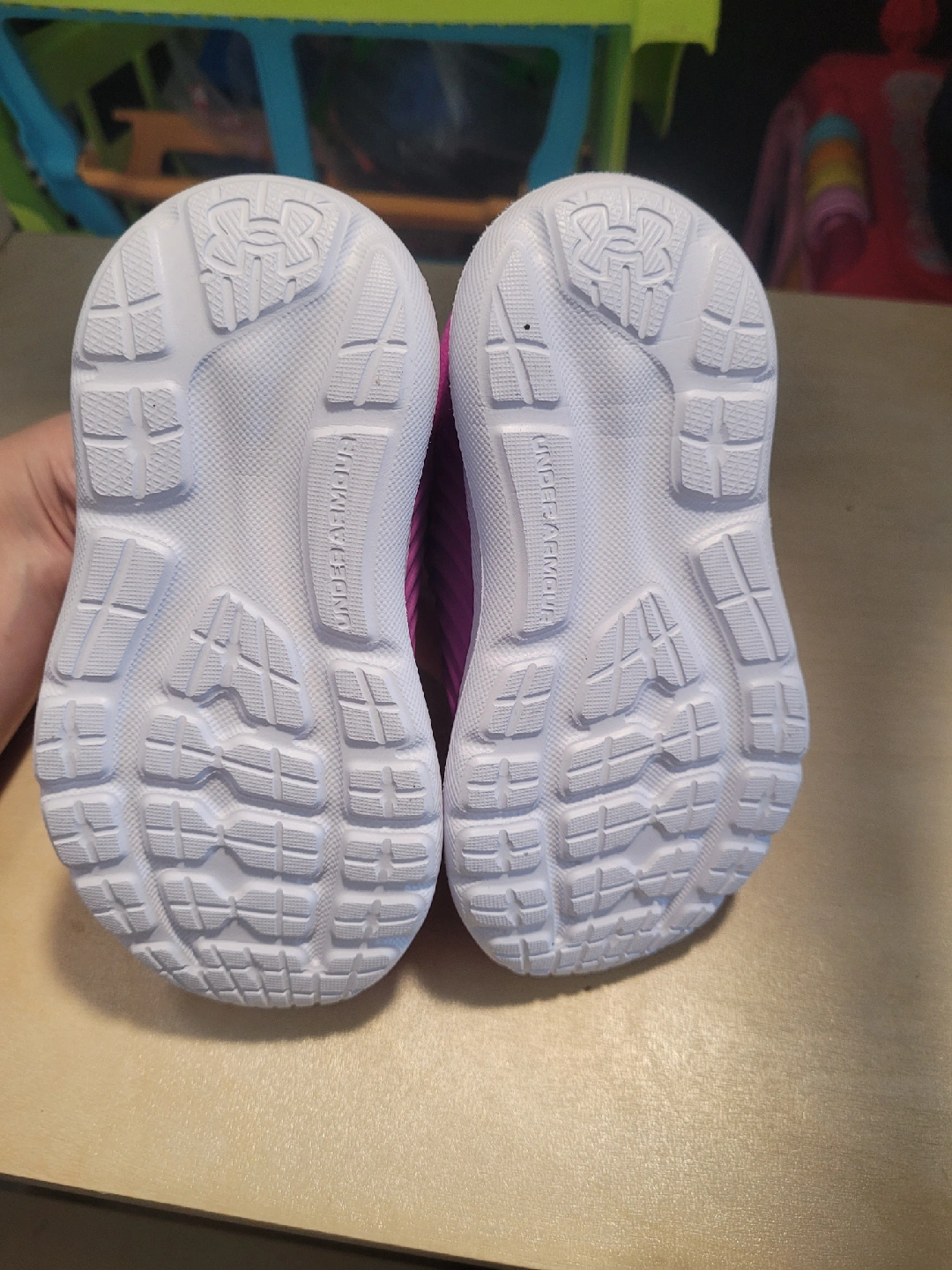 These adorable Under Armour toddler shoes are in great condition! They're a vibrant purple colour and a size 6. Perfect for your little one to run around in!
