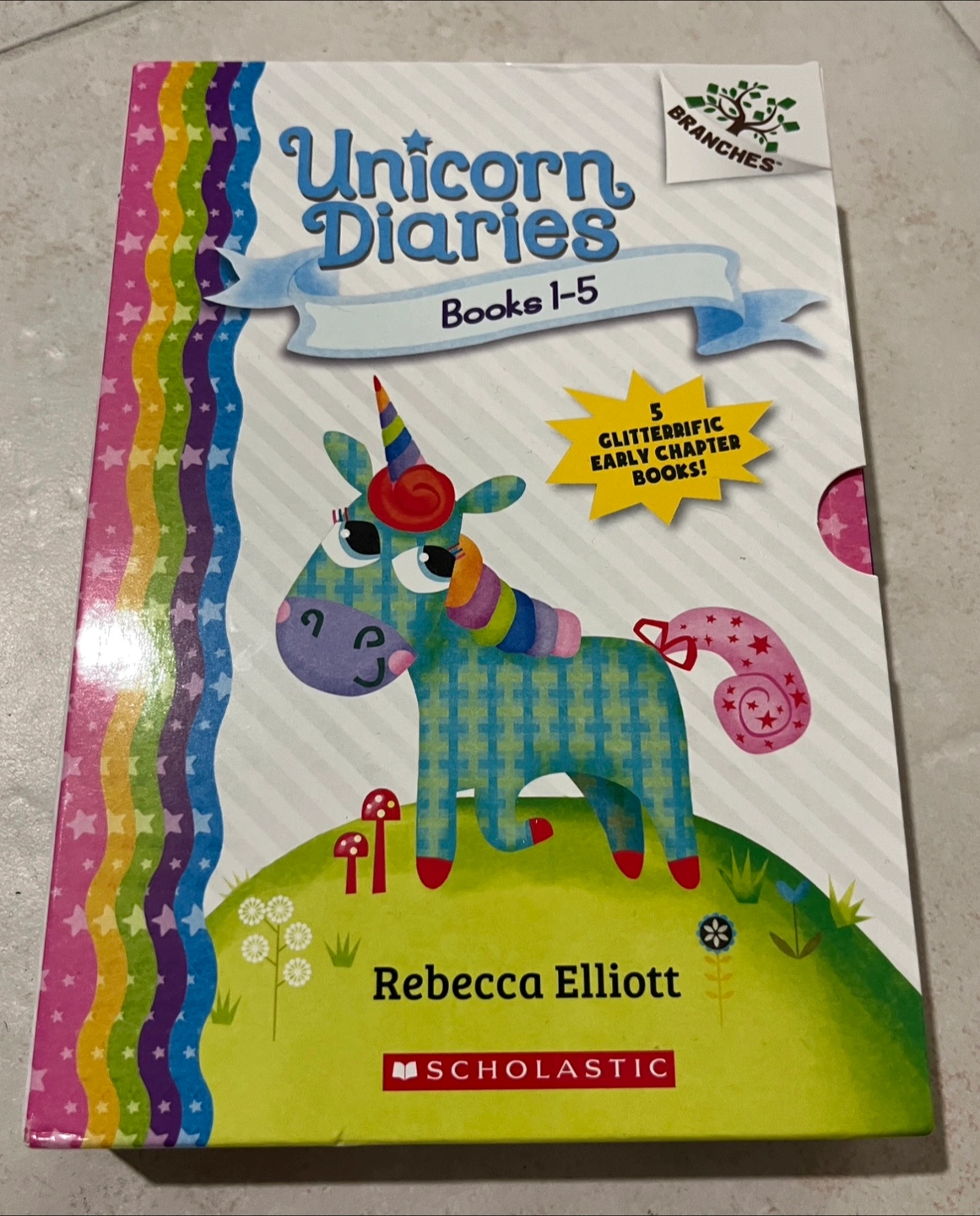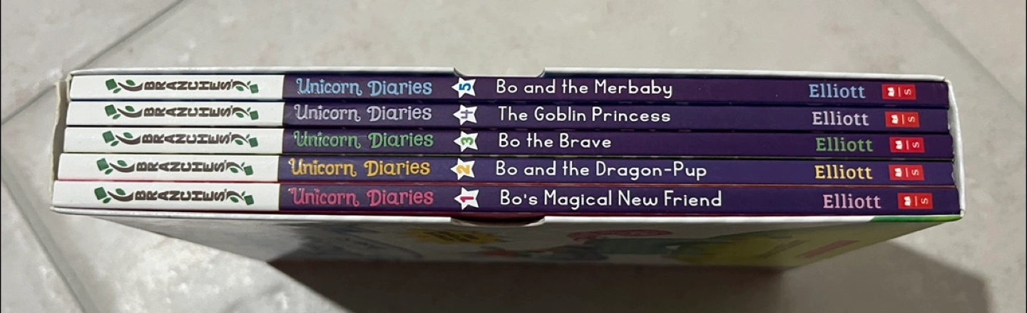 A set of children's books. The collection includes five books. Box is a bit worn, but the books look great. Reading these books before bed will help you relax.
