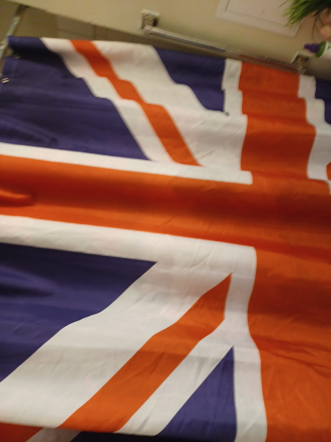 Selling a Union Jack flag. It features the traditional colours of red, white, and blue. Perfect for adding a touch of British flair to any room!