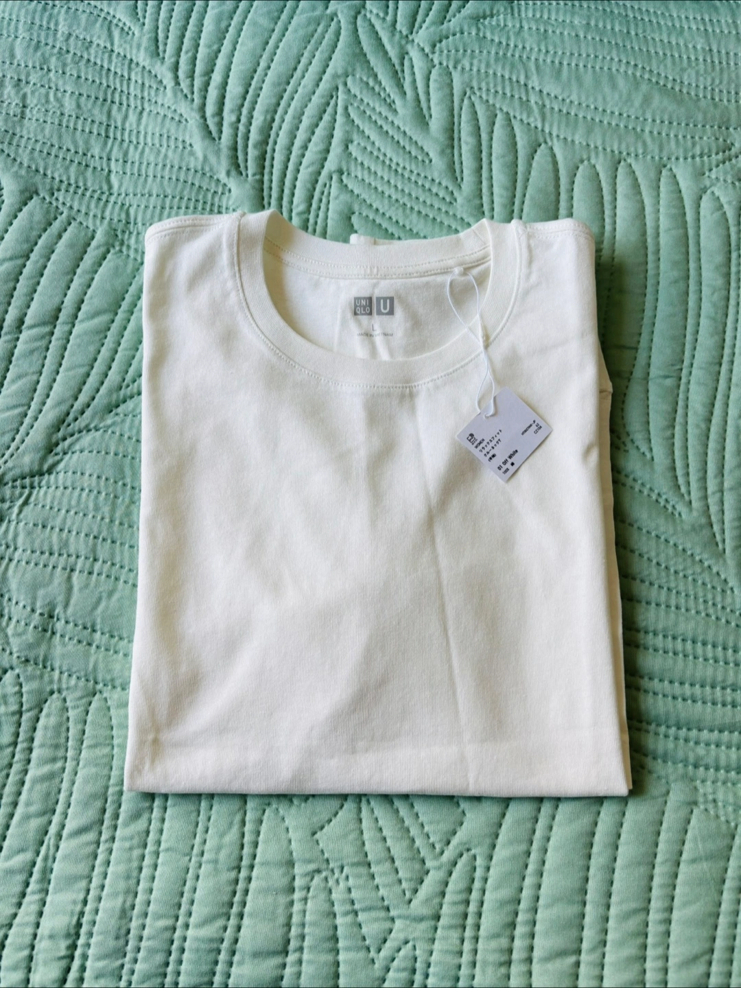 Off white crew neck t-shirt, 100% cotton, unisex, it’s women’s size Large like men’s size medium. Brand new with tag! Great for jogging or any casual activities! 🥰 I measured the pit to pit size is 21 inches, and 22 3/4 inches from shoulder to the bottom horizontally. Please check your size before proceed! Thanks for your time! 🥰💝
