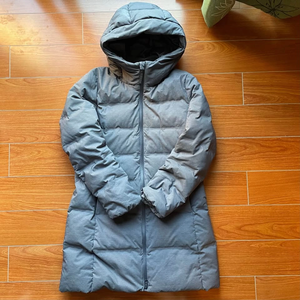 Stylish and lightweight seamless down long coat from UNIQLO. Provides excellent warmth without bulk and features a sleek, water-repellent design. • Color: Grey • Size: Women’s S (tagged M — Japanese sizing, equivalent to Canadian S) • Condition: Used; shows some signs of wear but no stains or damage (please see photos for details) • Purchased in Japan Perfect for staying warm and stylish during cold weather.