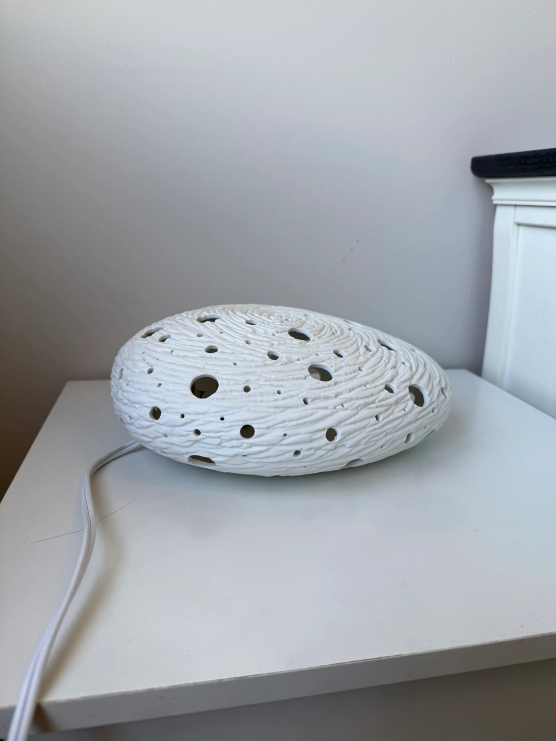 White ceramic lamp. Stone look. Cord included. Modern style.