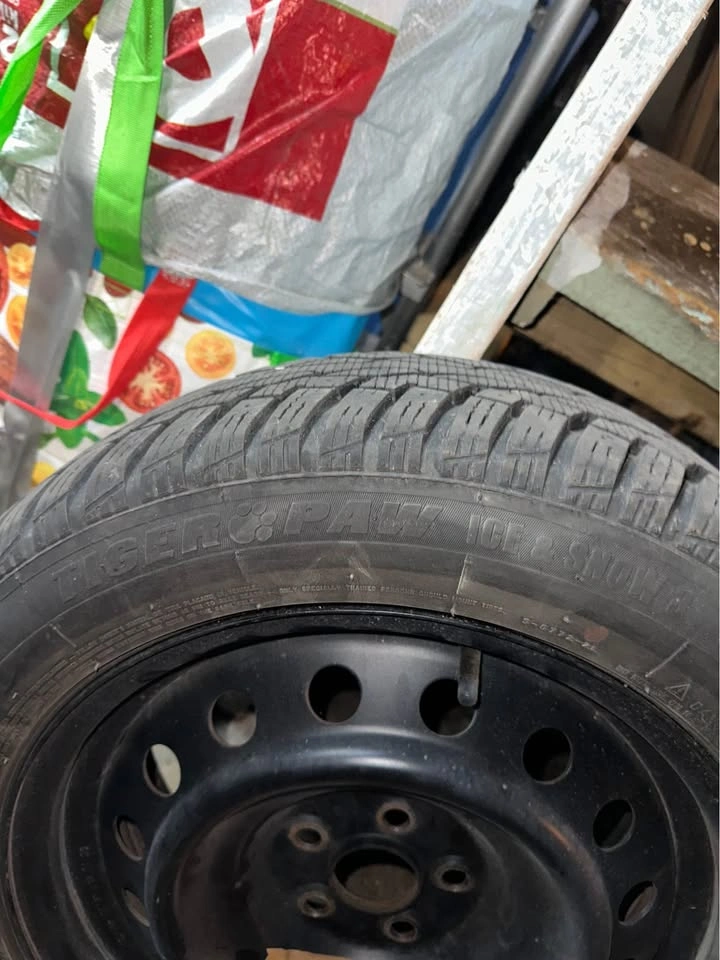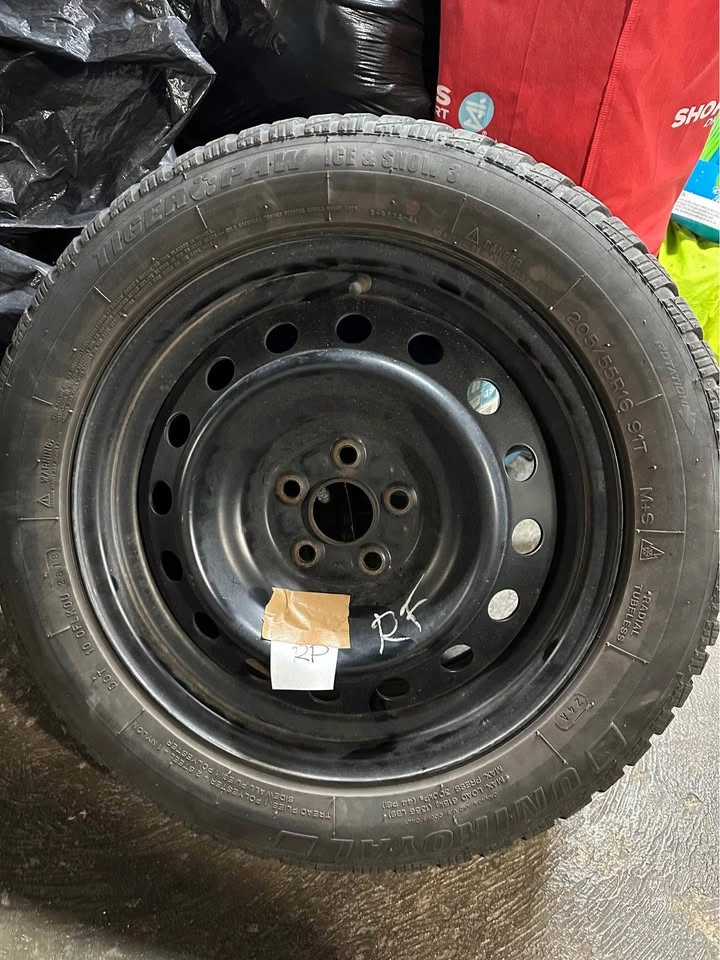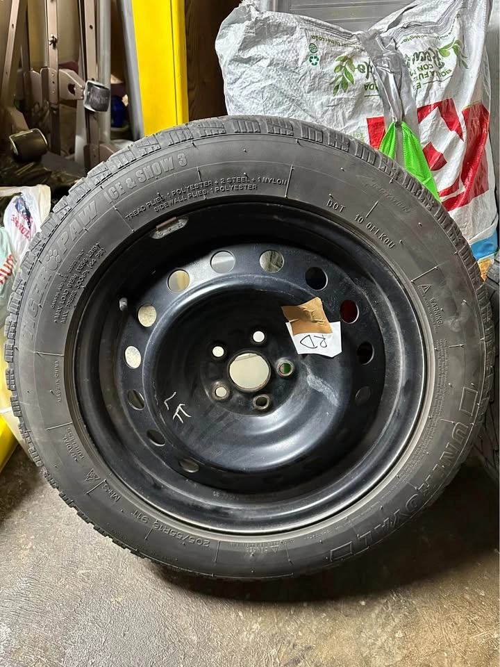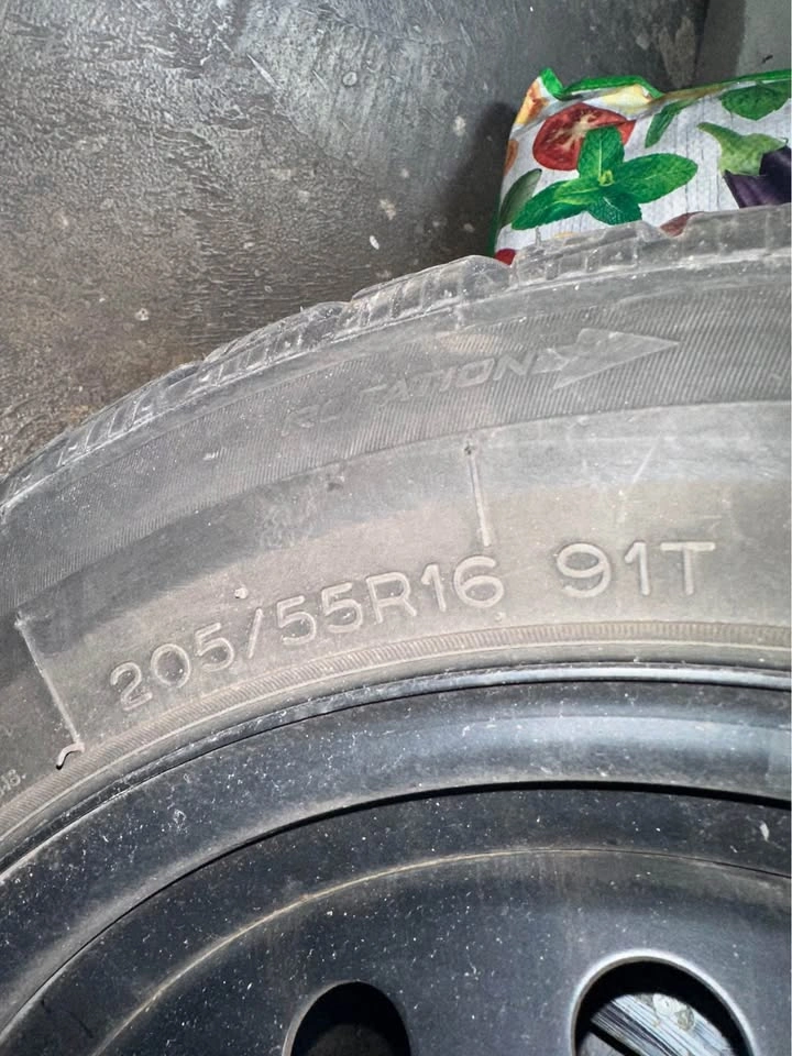 205/55/16R 91T size and fitment of both tire and rim, good tread left. These were previously on a 2019 Toyota Corolla Hatchback. Any questions feel free to inquire. Maximum inflation pressure - 44 psi Maximum load -1,356 lb (single) Tread depth (new) - 11⁄32″ Rim width range (allowable) - 5.5″ – 7.5″ Section width (sidewall-to-sidewall, mounted & inflated) ~ 8.4 inches Overall diameter ~ 24.9 inches (≈ 630 mm)