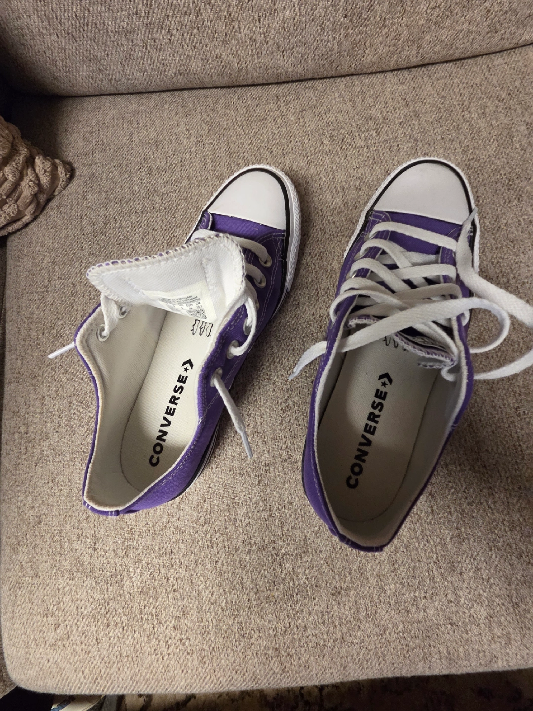 Selling a pair of purple Converse All Star low top sneakers. They're in great shape and ready for a new home! Size 8.