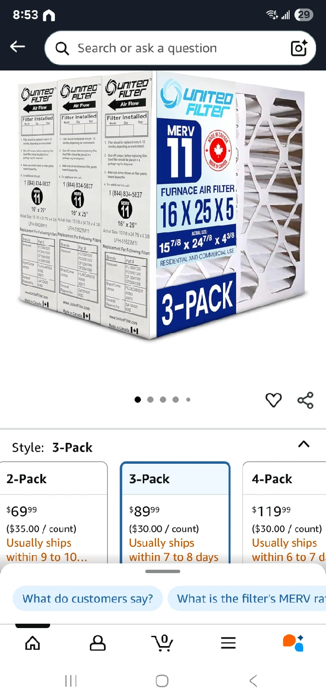 Selling a new United Filter UFC 51625M11 furnace air filter! It's size 16x25x5 and has a MERV 11 rating. Great for residential and commercial use.