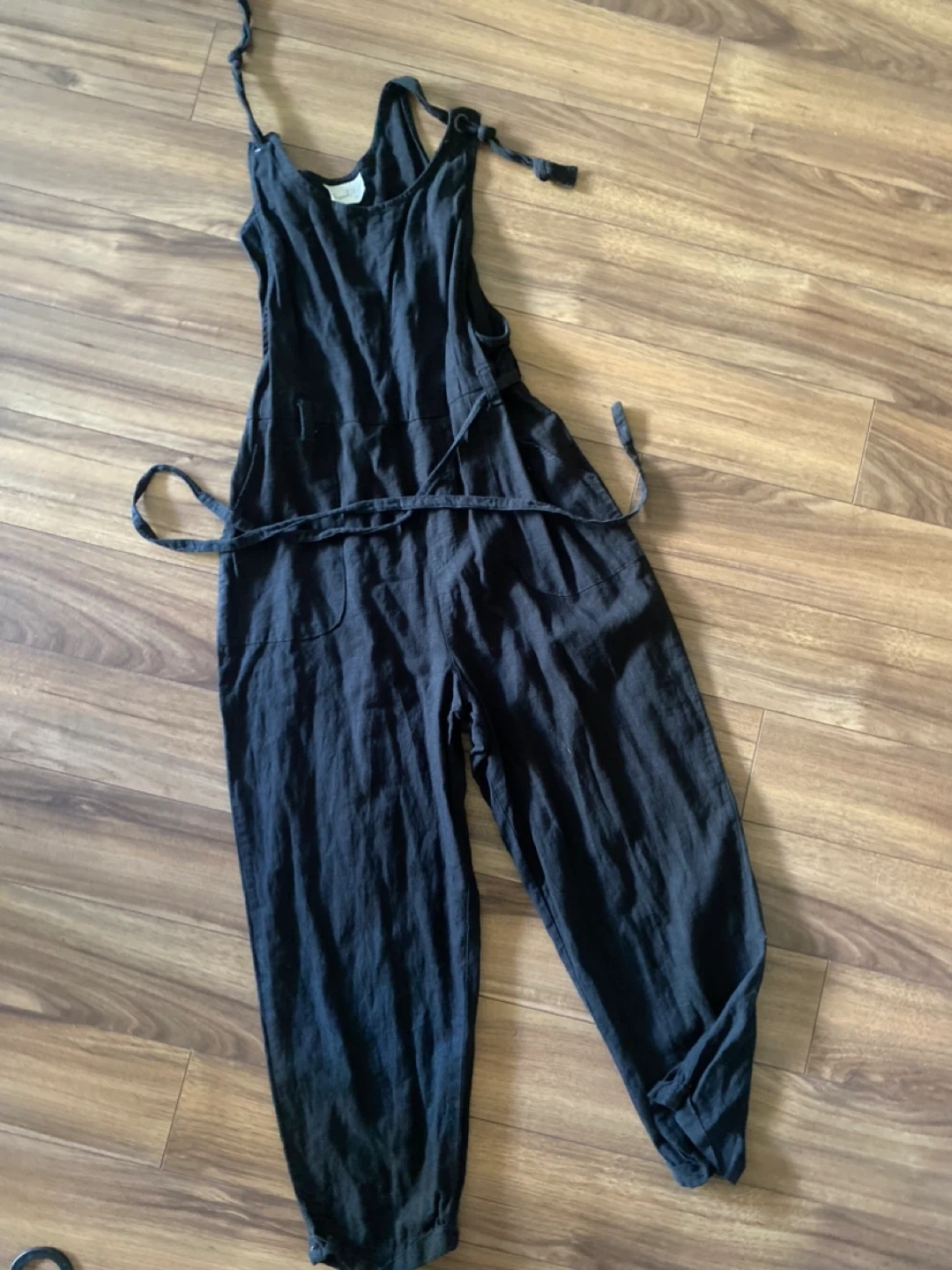 Selling a cute black jumpsuit from Universal Thread! It's a size small and in great condition. Perfect for a casual day out or dressing up for an evening event. It features a tie at the waist. Let me know if you're interested!