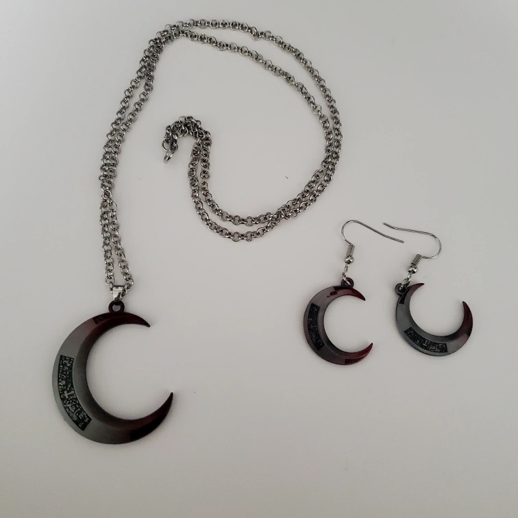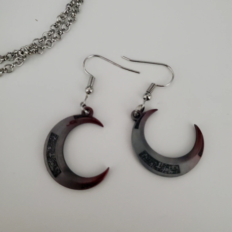Hi, I'm selling an Unofficial Marvel Moon Knight Earrings and Necklace Set. $5 for the set. Meetups at eaton centre or parliament st and dundas st e.