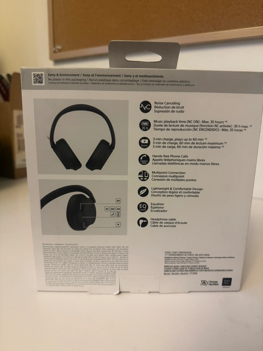 Selling a brand new pair of Sony WH-CH720N (UNOPENED) noise cancelling headphones! These headphones offer: - Noise cancelling - Up to 35 hours of music playback - Hands-free phone calls - Multipoint connection - Lightweight and comfortable design - Equalizer Comes with a headphone cable