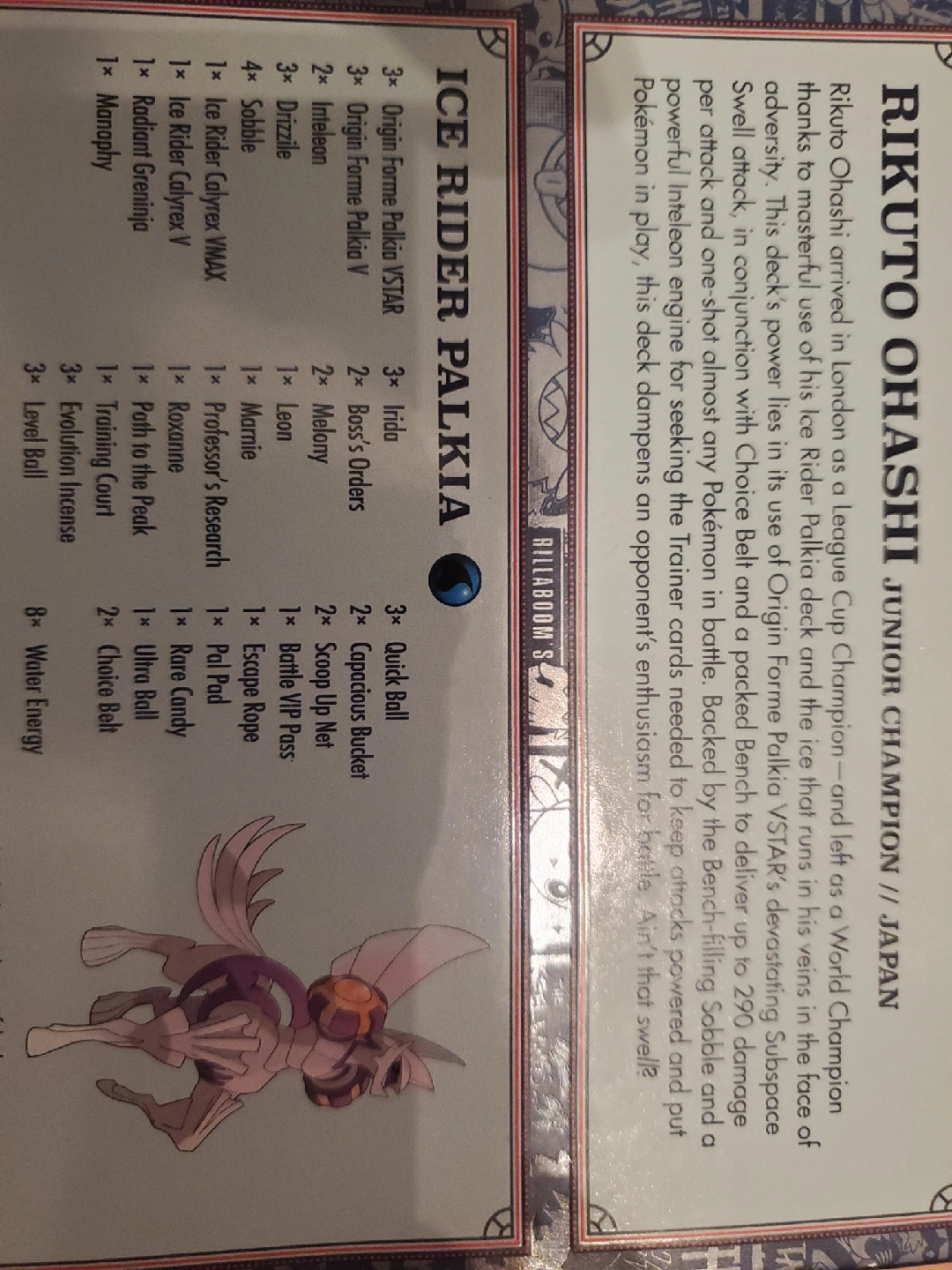 Unopened Pokemon TCG 2022 World Championship Decks, Rikuto Ohashi Jr champion, Japan. includes Ice Rider Palkia, makes complete deck.