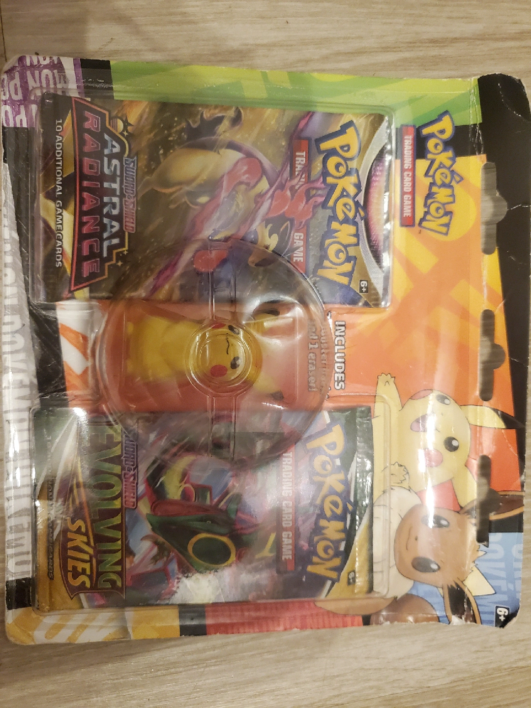Get ready to expand your Pokemon Trading Card Game collection! This pack includes two Pokemon TCG sets of 10, Astral Radiance and Evolving Skies. Also includes Pikachu eraser!