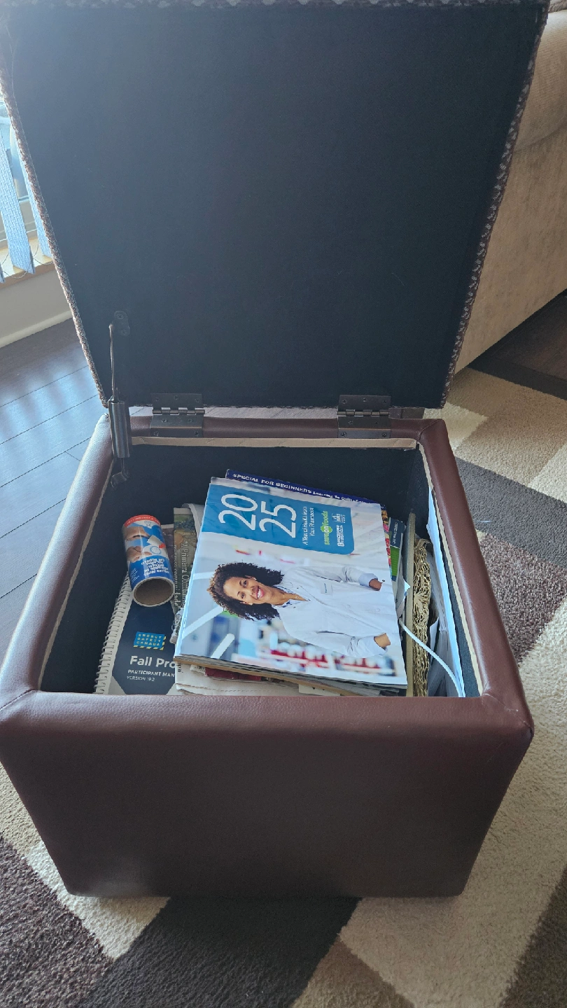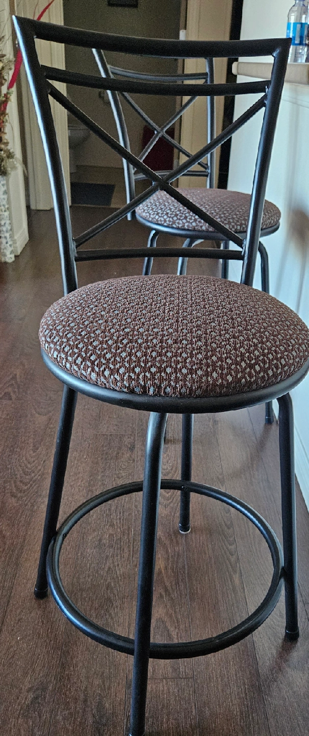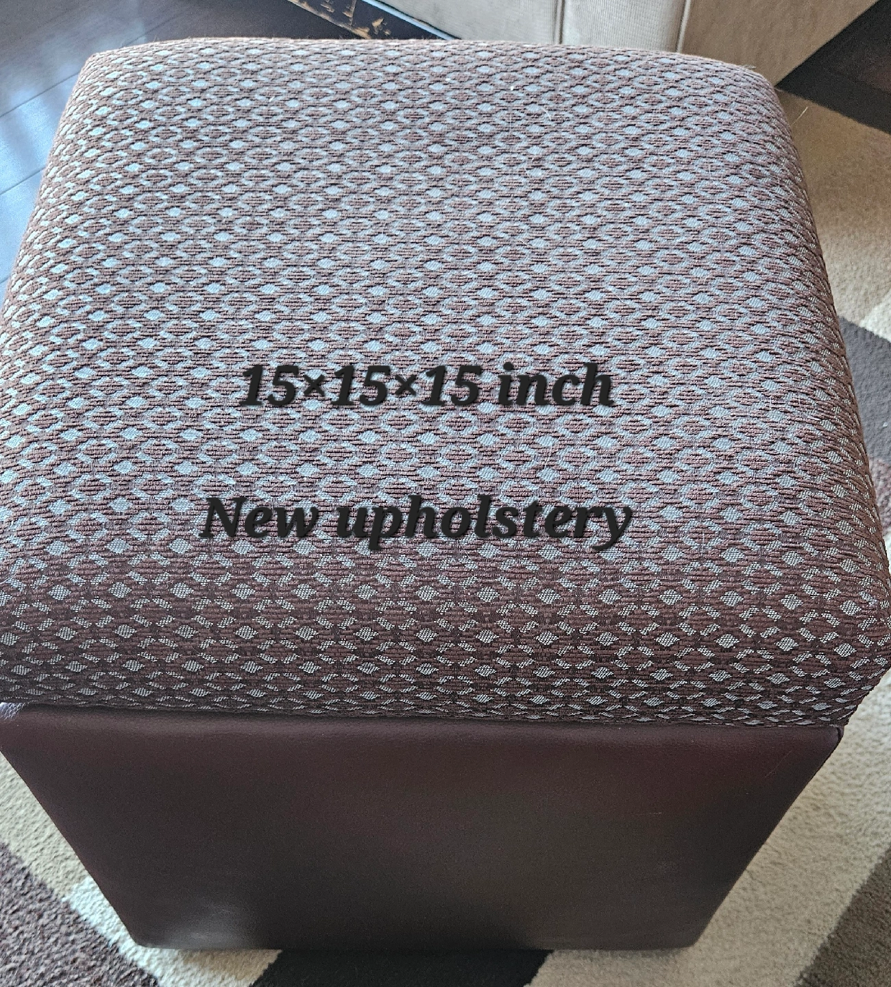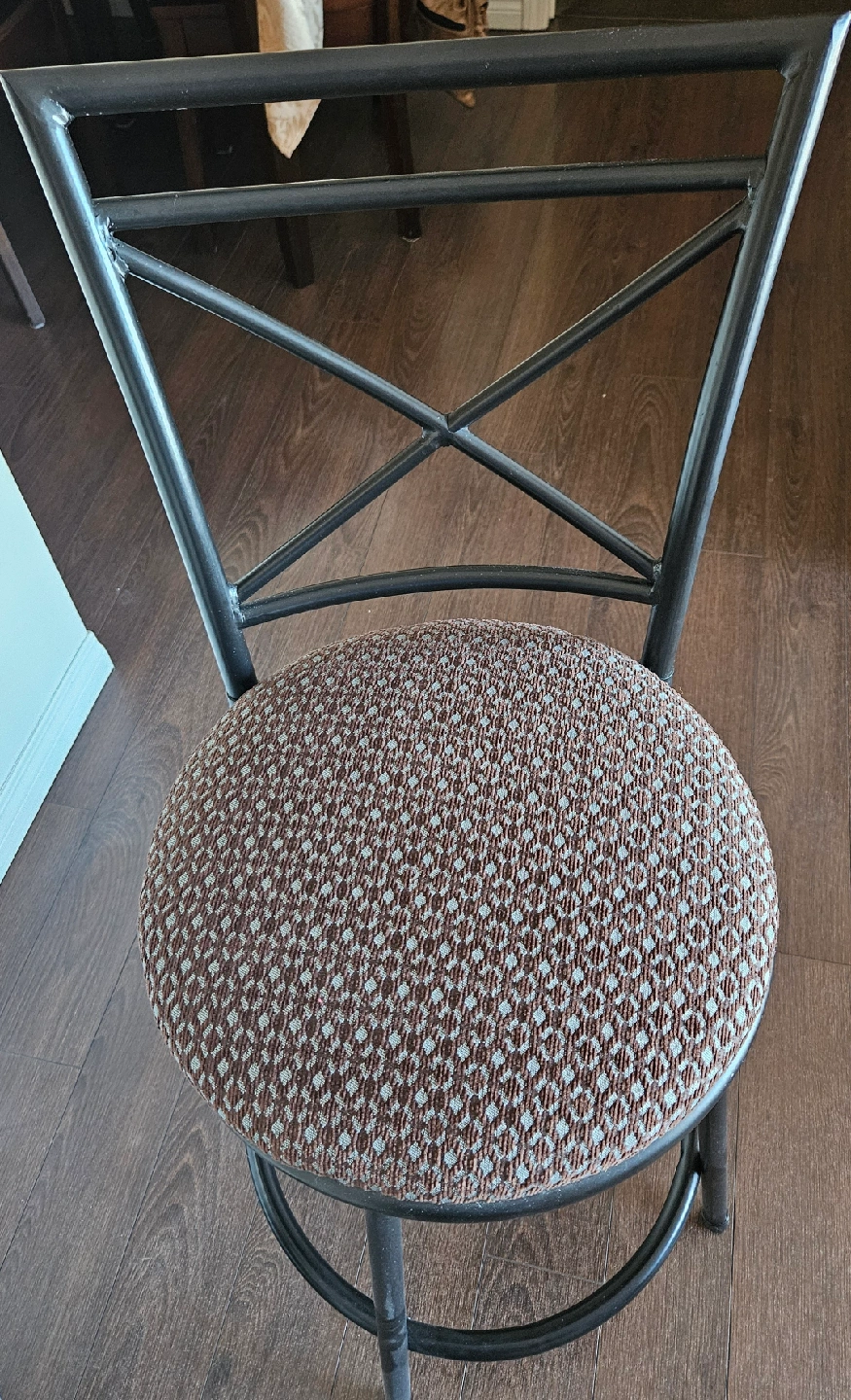 I have a set of new upholstered bar stools with a black metal frame. also, a metal chair, and a storage ottoman with new upholstery, measuring 15x15x15 inches. Great for extra seating and storage!