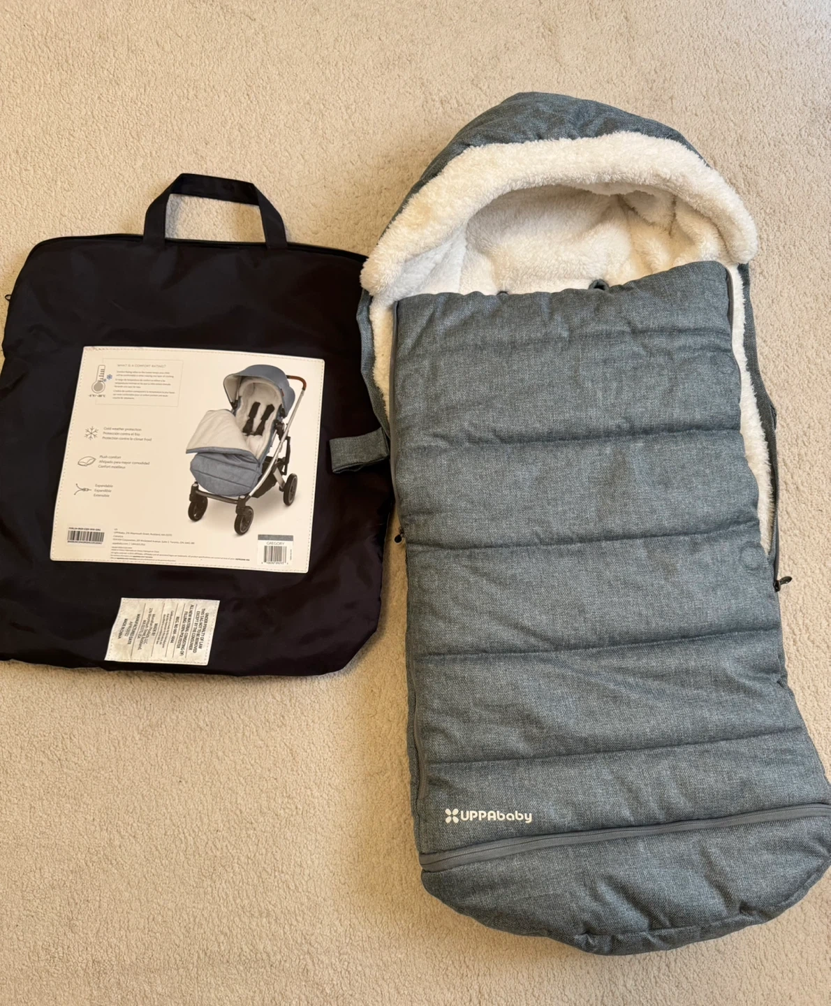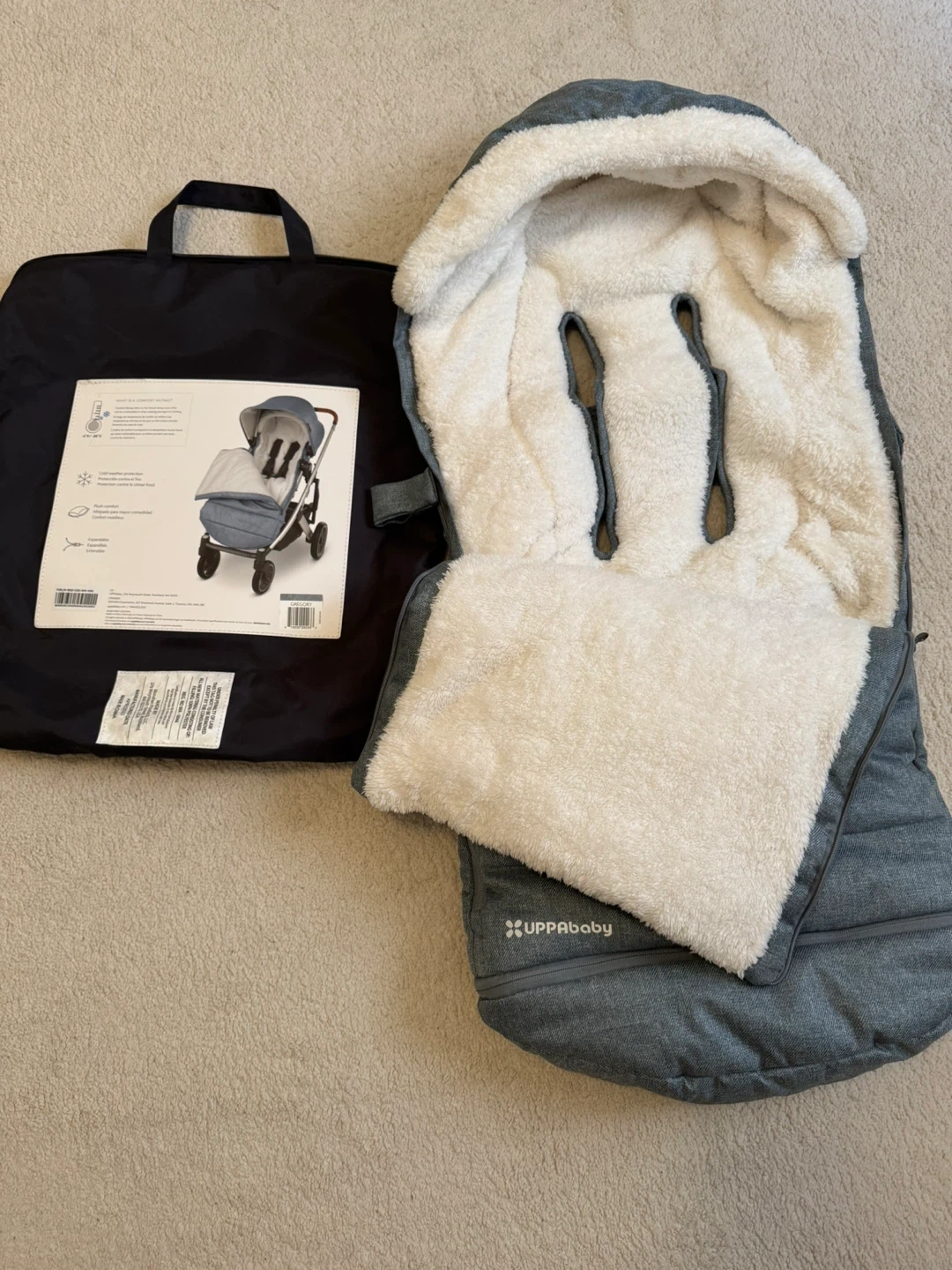 Keep your little one warm and cozy with this UPPAbaby CozyGanoosh! It's compatible with VISTA V2, VISTA 2015+, CRUZ V2, CRUZ, MINU V2, MINU, and Rumbleseat. Perfect for cold weather protection and offers plush comfort for your baby. Comes with the original bag!