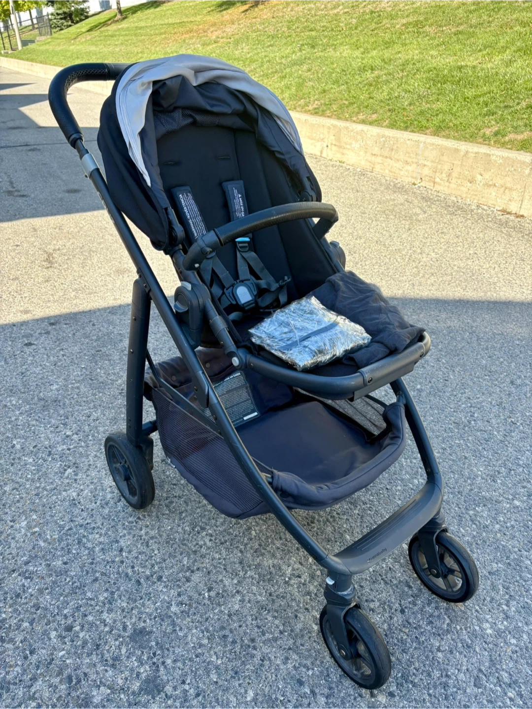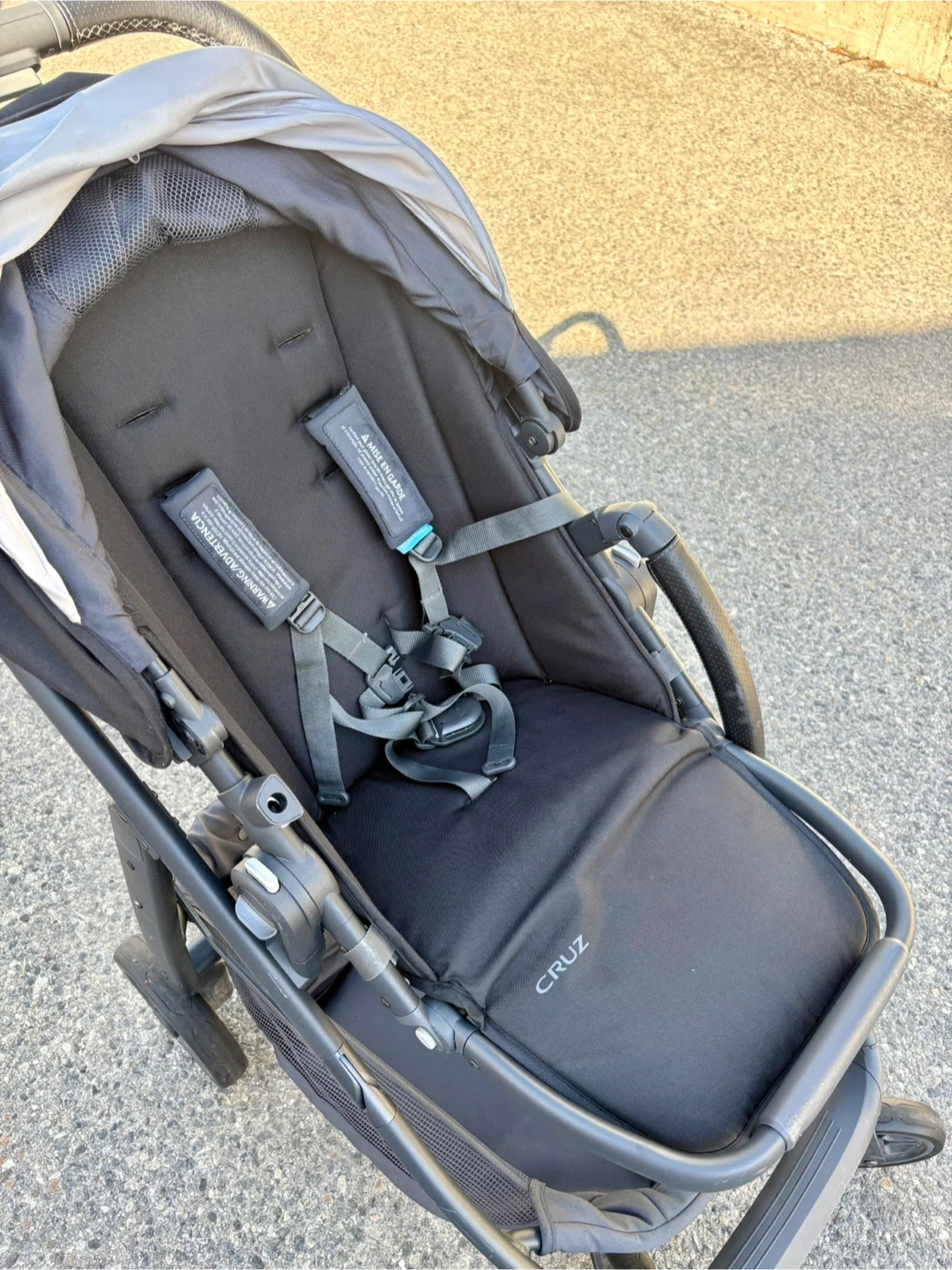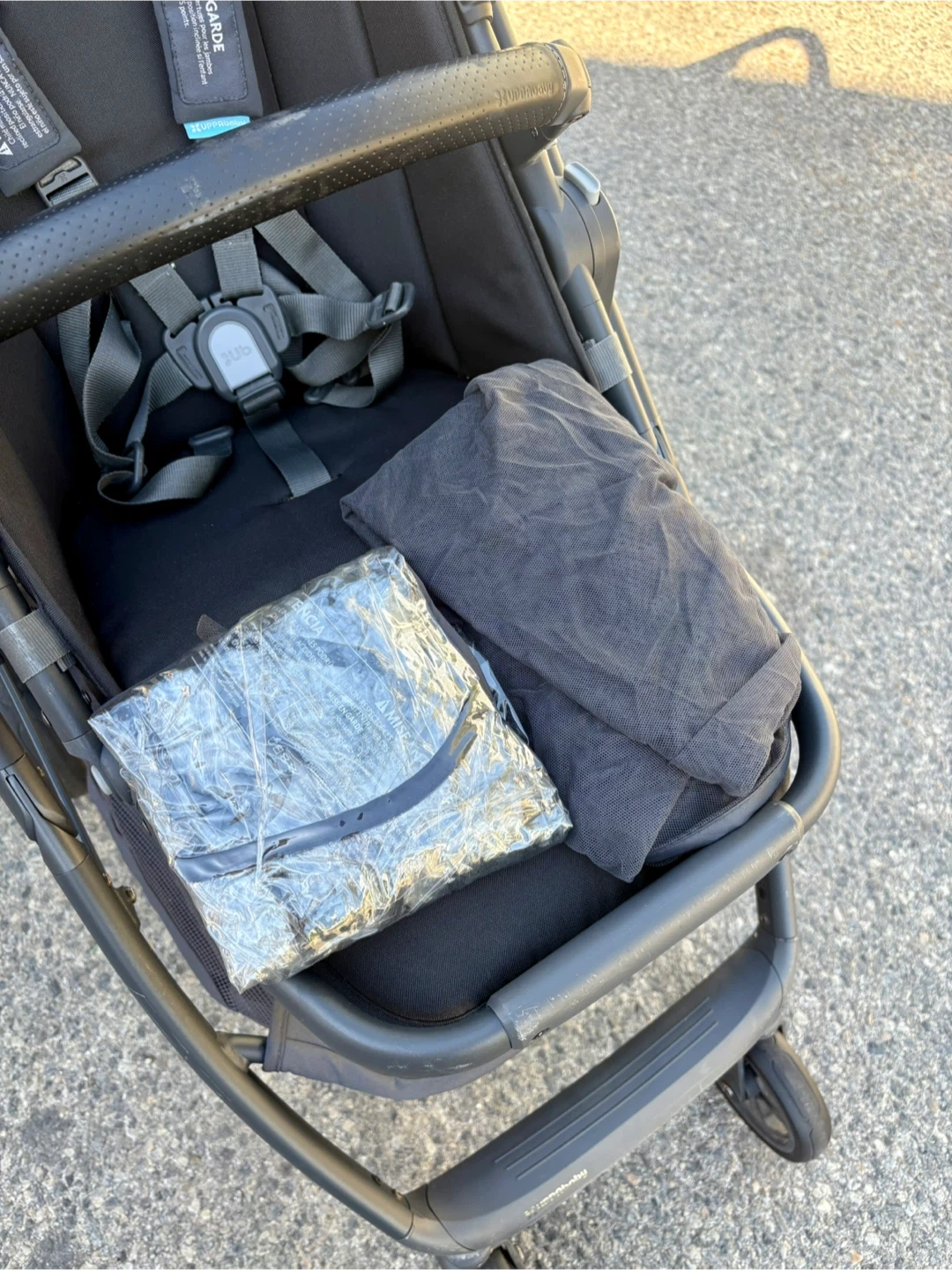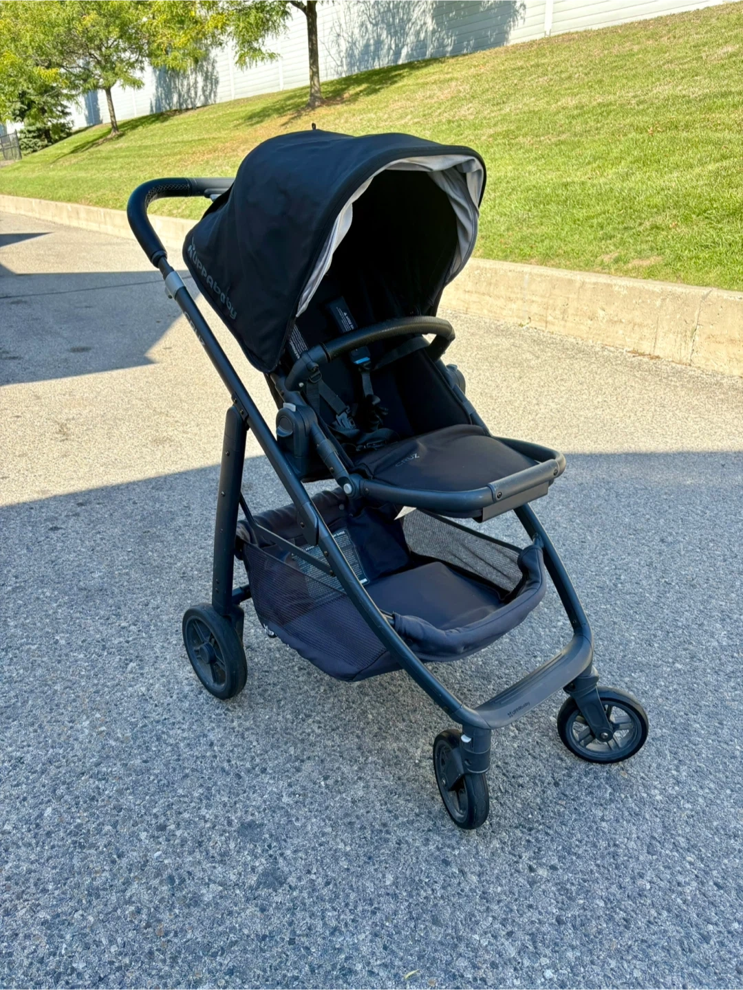 Selling a used UPPAbaby Cruz stroller in black. It's in great shape and ready for a new family. It features a comfortable seat, a large storage basket, and a smooth ride. All accessories- rain cover and mesh net are included.