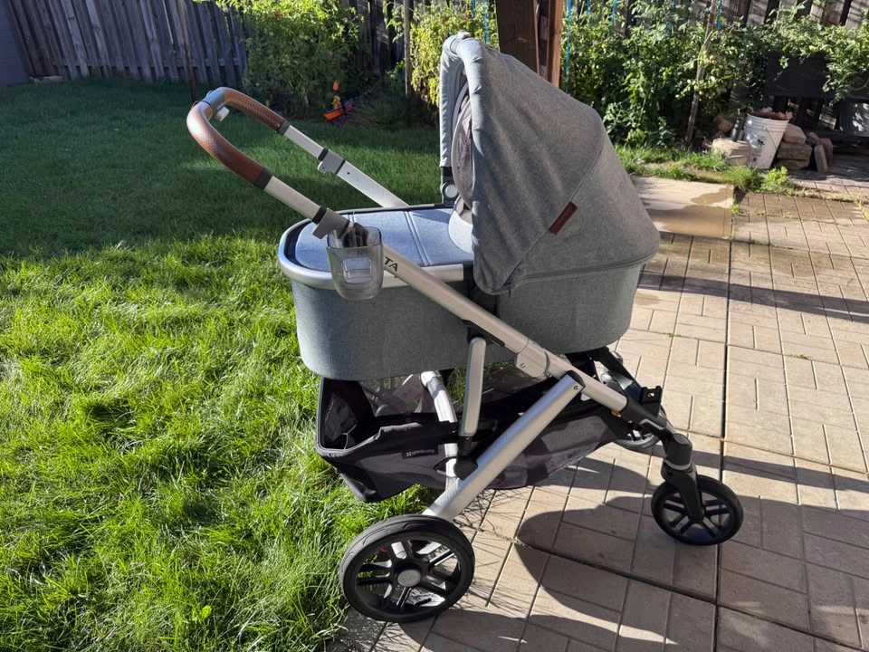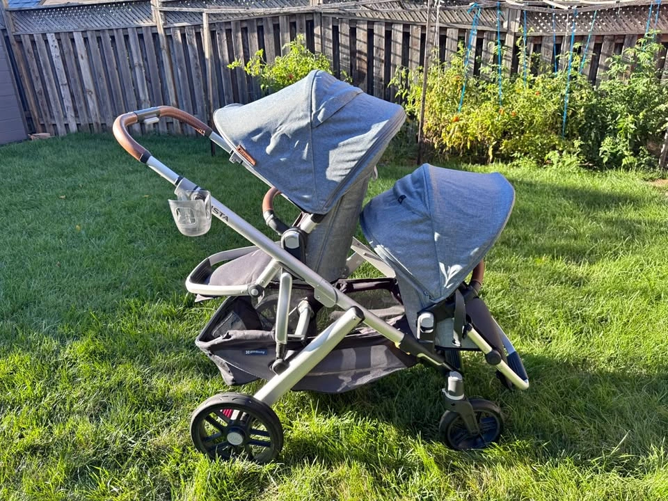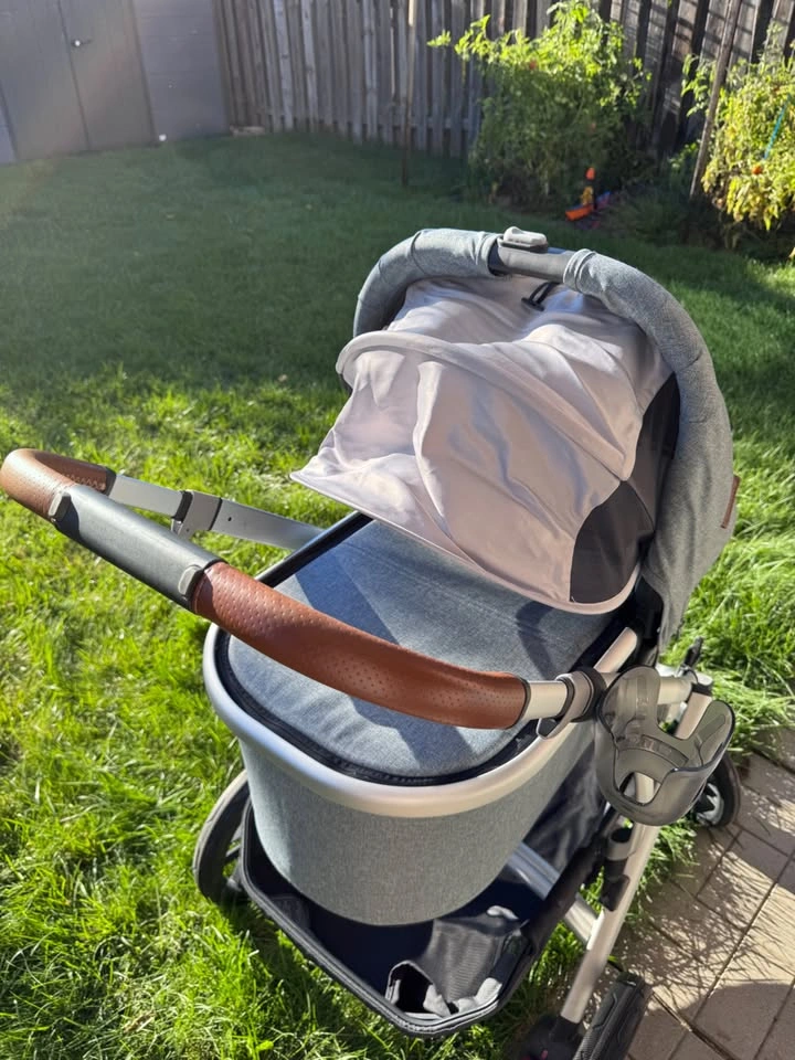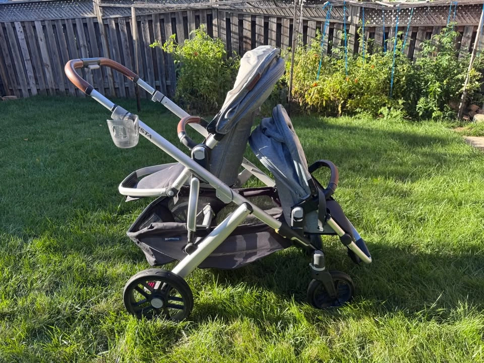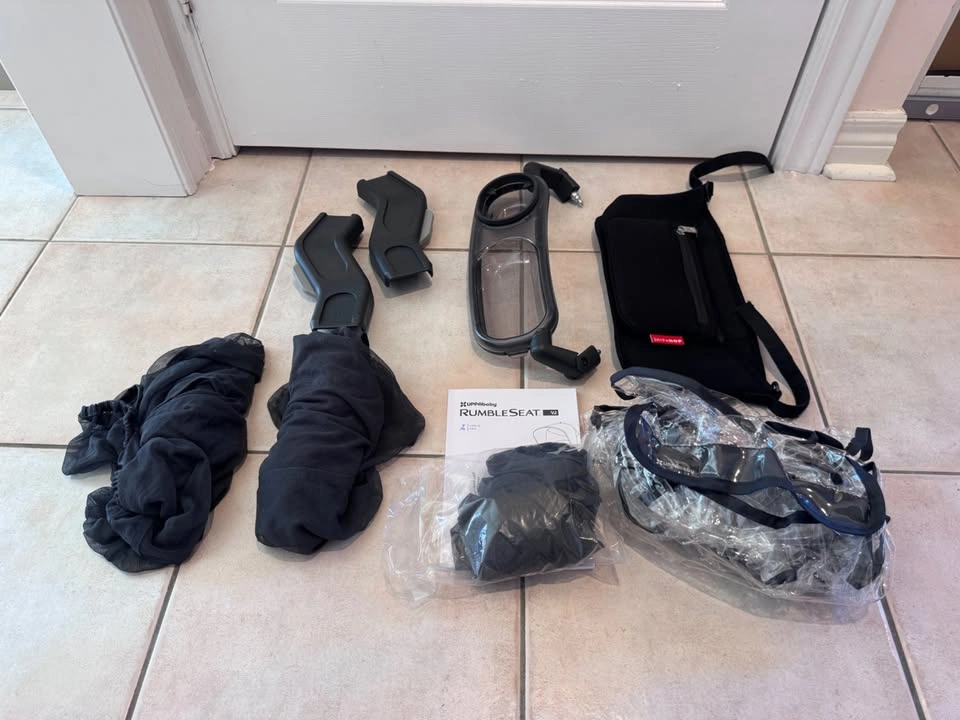 Uppababy Vista V2 - in colour Gregory (2020) Includes: - bassinet - Rumble seat (2023) - Snack tray - Cup holder - Bug nets x3 - Rain cover - Infant car seat adapter - skip hop caddy - winter foot muff Light use (purchased during covid) always kept indoors, rumble seat purchased earlier this year.