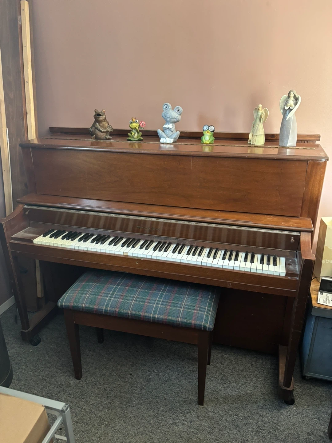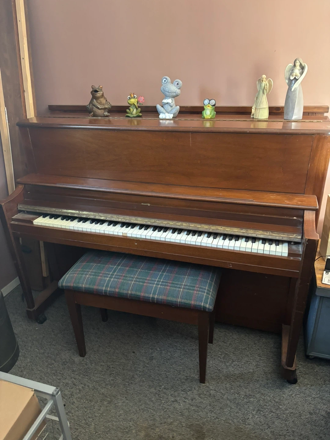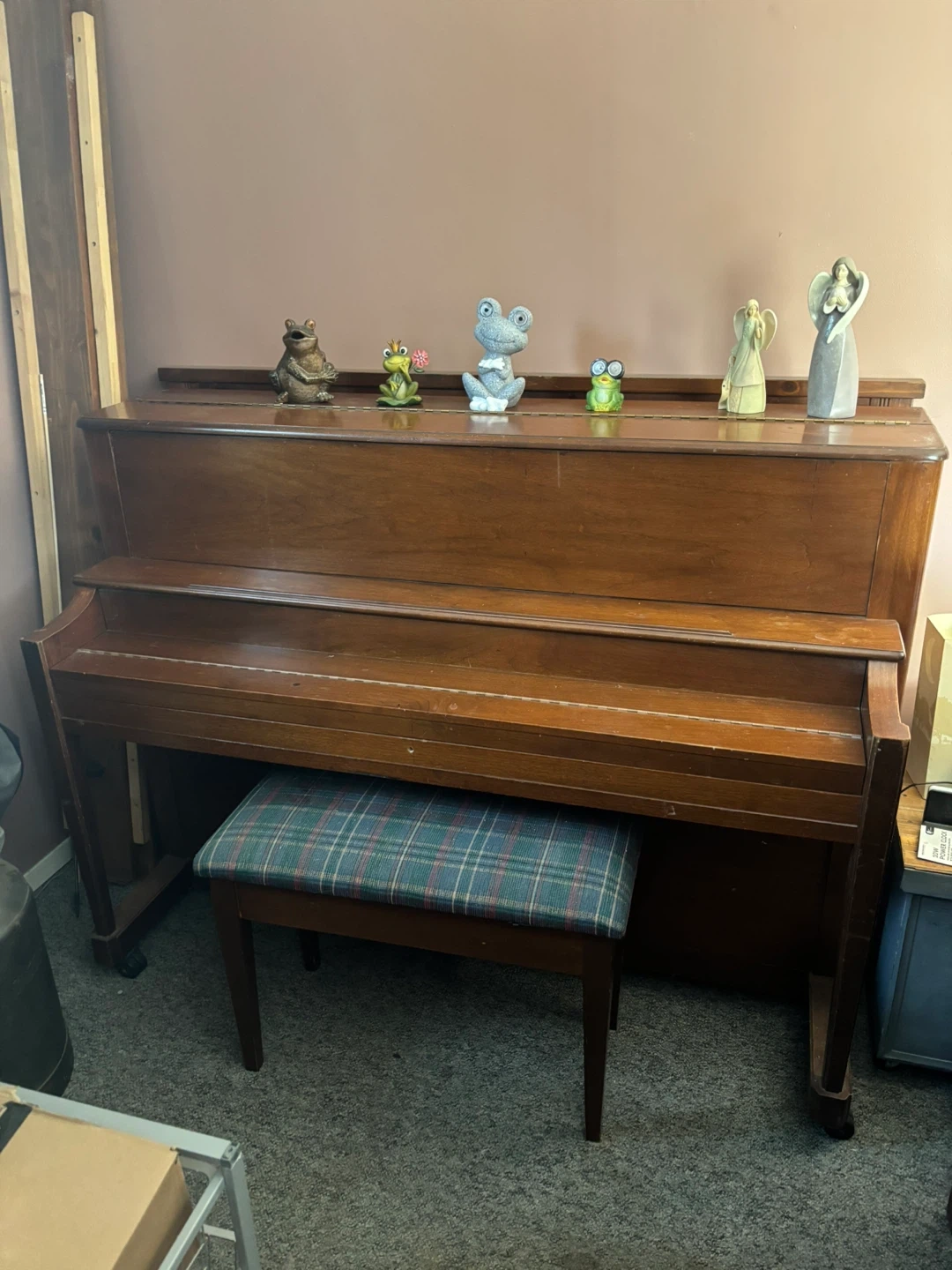 Selling an upright piano that comes with a matching bench. It's a lovely piece of furniture and a musical instrument all in one. Perfect for someone looking to add a touch of elegance to their home or for a musician looking for a new instrument to play! Easy to load up a ramp to trailer from a walkout basement.