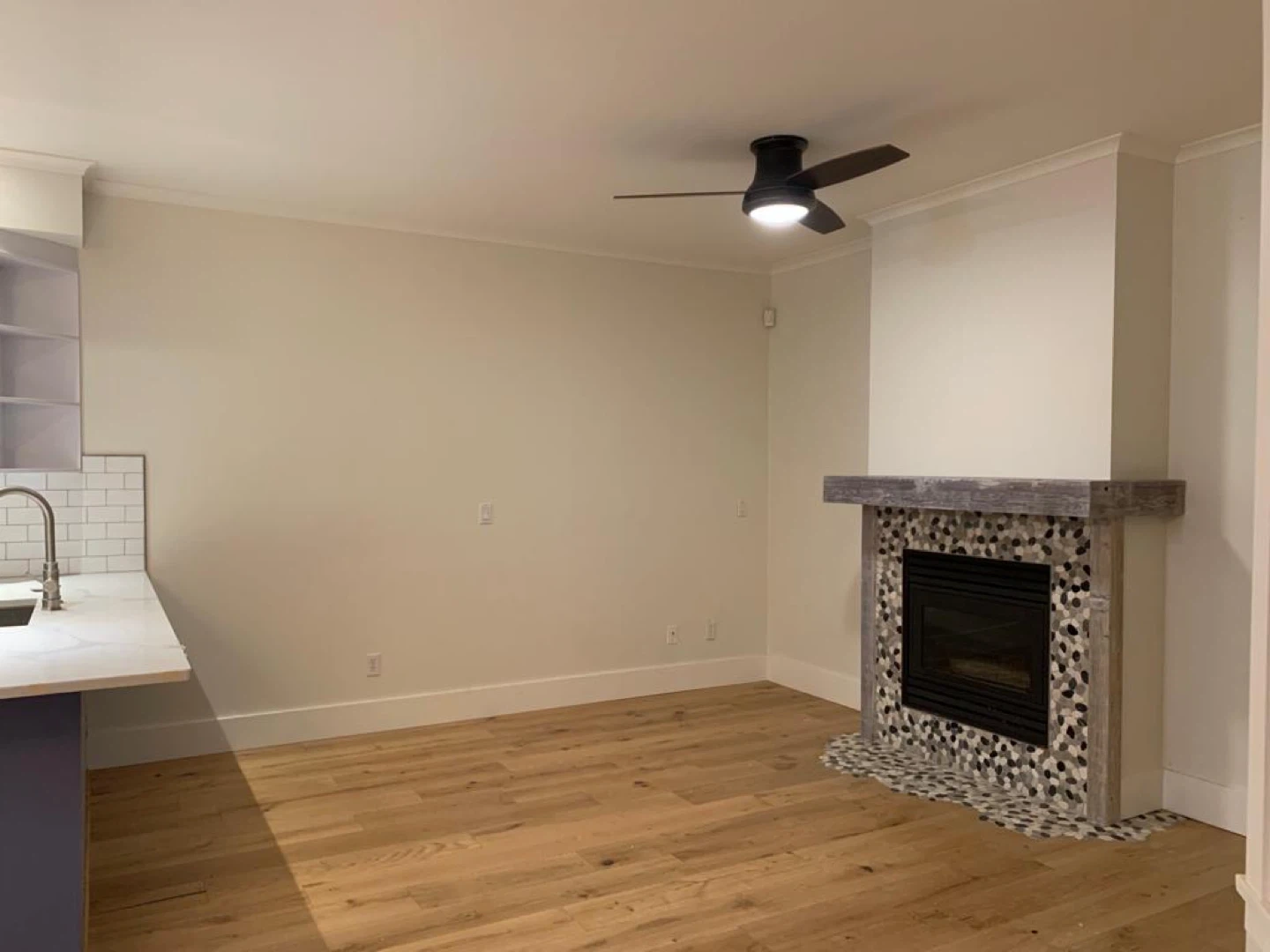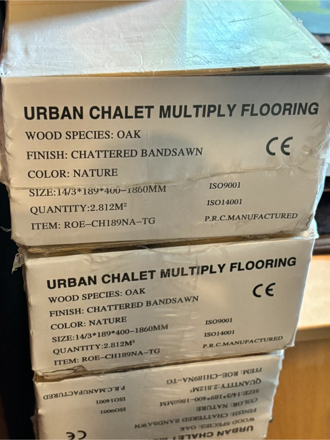 Selling Urban Chalet Multiply engineered hardwood flooring. - Wood species: Oak - Finish: Shattered Bandsawn - Colour: Nature (light colored- see reference picture with fireplace) - Size: 14/3*189*400-1860mm - Quantity: 2.812m2