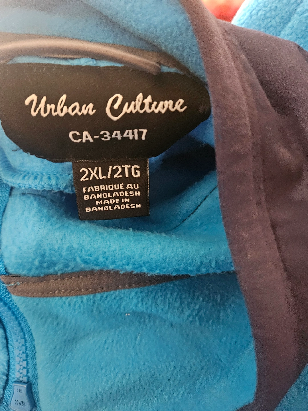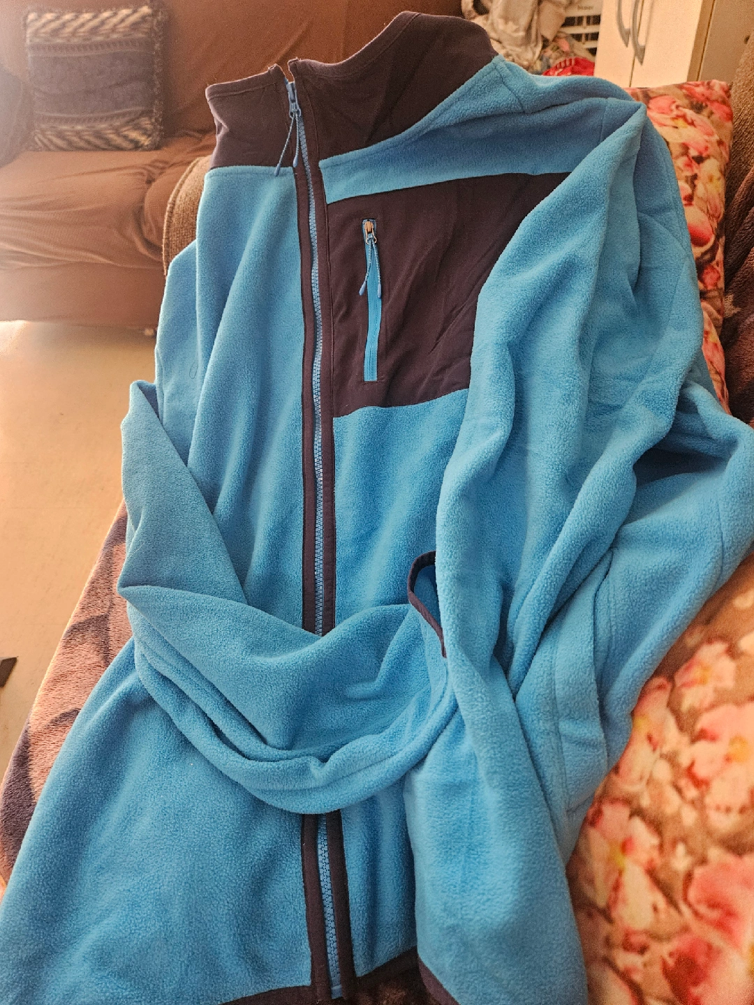 Cozy Urban Culture fleece jacket in size 2XL. It's a lovely blue colour with navy blue accents. Perfect for chilly days or layering! worn once inside the apartment , I don't like it