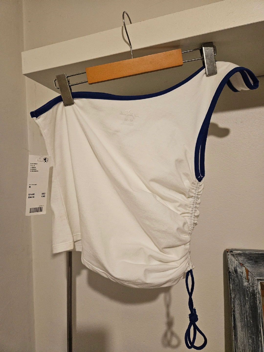 Selling a cute white tank top from Urban Outfitters! It's a size M and has a stylish design with blue trim.