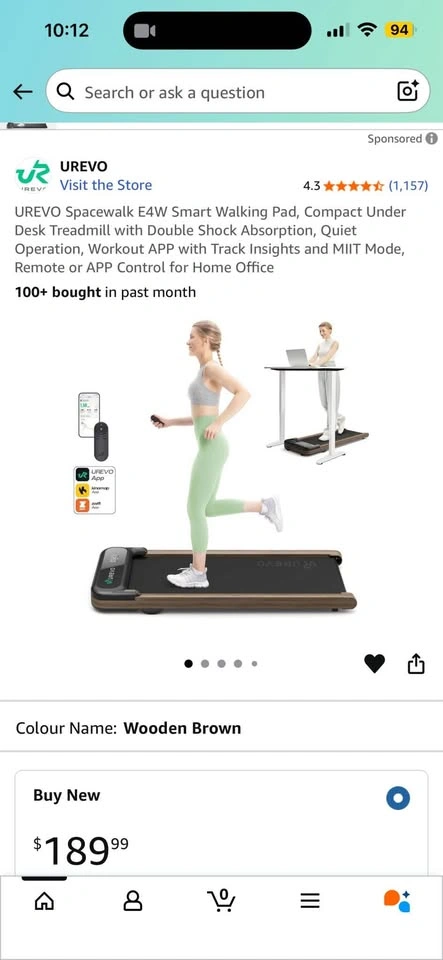 Item is available as long as the listing is up. Open Box - Like New $190 on Amazon UREVO Spacewalk E4W Smart Walking Pad, Compact Under Desk Treadmill with Double Shock Absorption, Quiet Operation, Workout APP with Track Insights and MIIT Mode, Remote or APP Control for Home Office