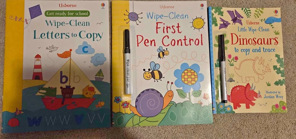 Set of 3 Usborne wipe clean books. All 3 are in like new condition. 2 of the books still have the original marker attached. Retails for $30 plus tax, selling for $15 as a set obo.
