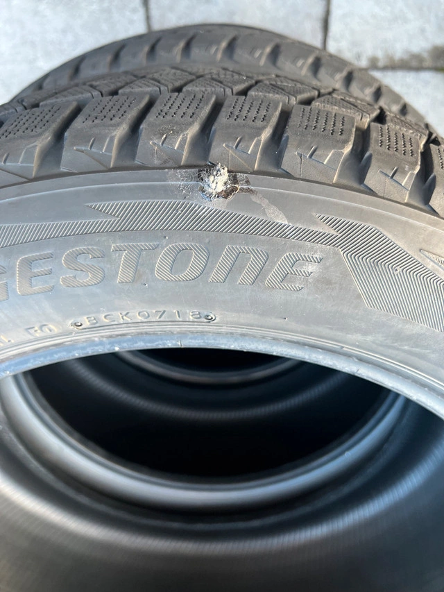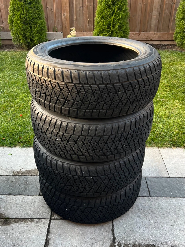USED - 235/55/R19 bridgestone blizzak dm-v2 winter tires. Tires have even wear. 1 tire has a plug near the edge of the tread but has held air without issues. Selling as a set only. Size - 235 / 55 / r19 DOT - 07/18 Tread depth - 8.5/32