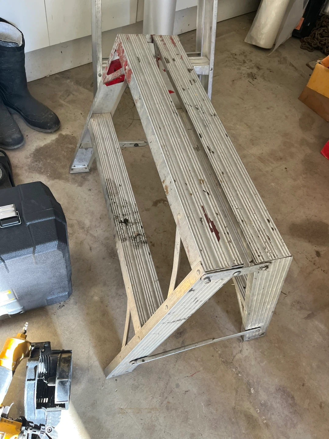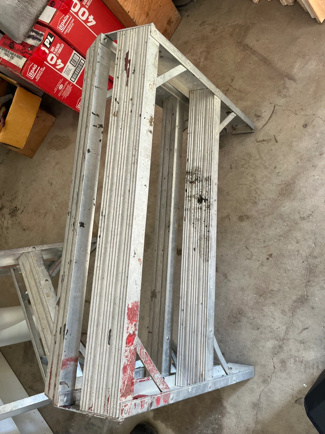 Selling a used aluminum step ladder. It's sturdy and ready for your next project. Perfect for reaching those high shelves or tackling home repairs