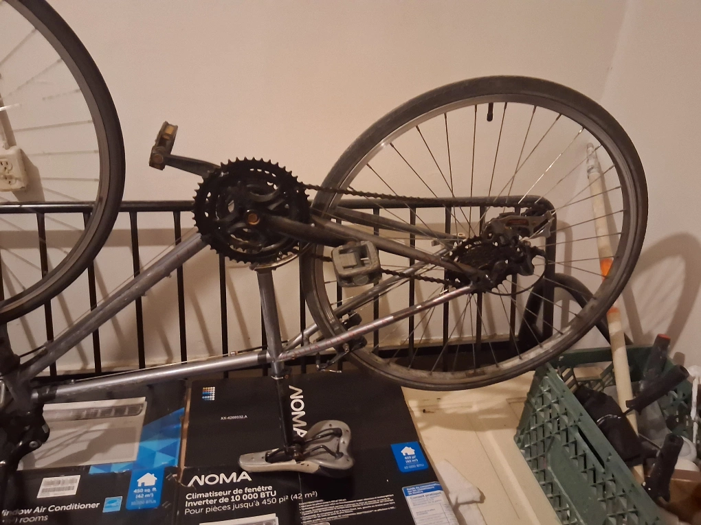 Selling a used bicycle. It has some wear and tear, but it's still in working condition. Please take a look at the photos to see the condition