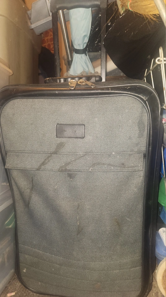 Selling a used black wheeled suitcase with handle size medium. It has some signs of wear and could use a cleaning, but it's still functional for travel or storage. pick up only.
