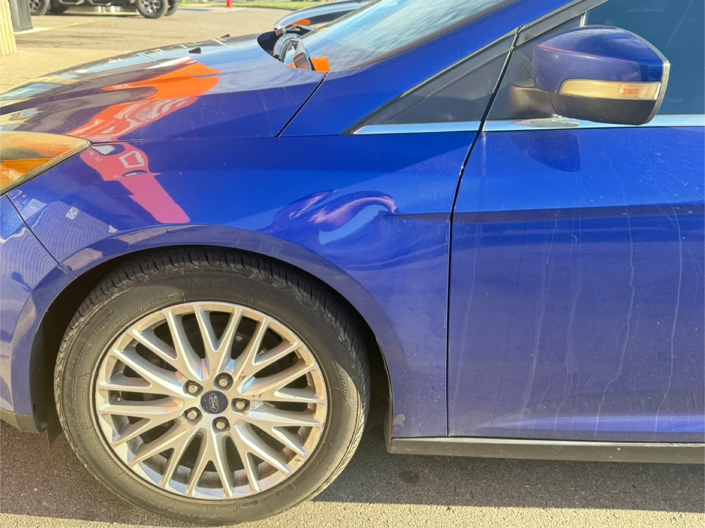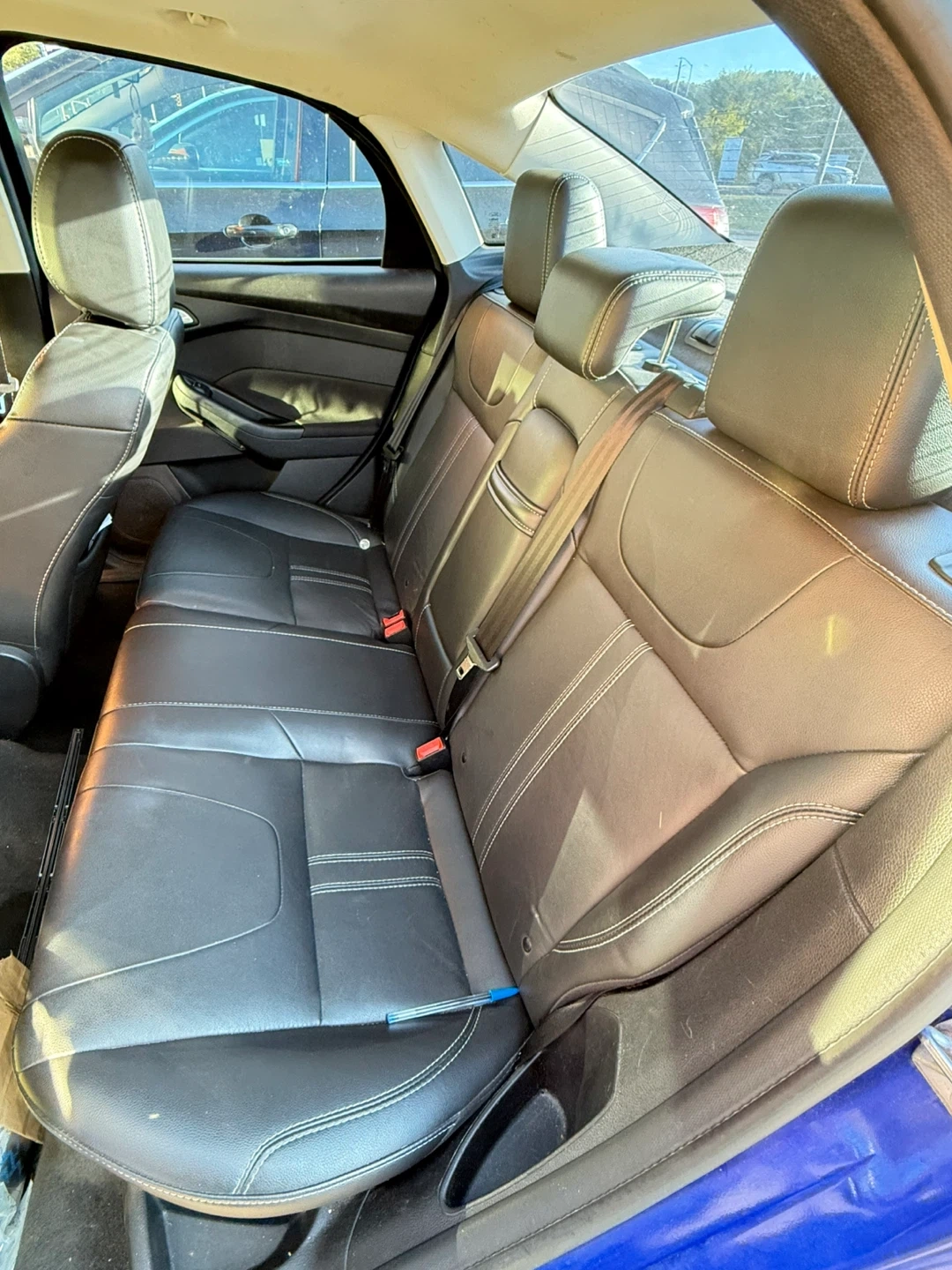 Selling a used Ford Focus sedan. It's blue with black interior. The car has some wear and tear, but is still in good working condition. Mileage 260000