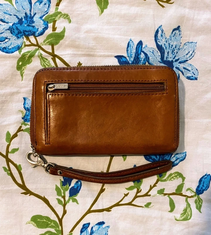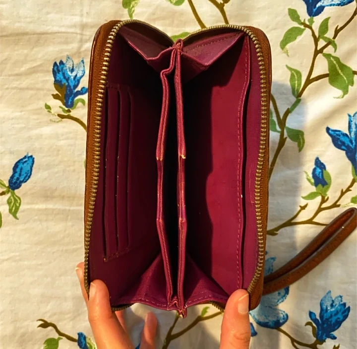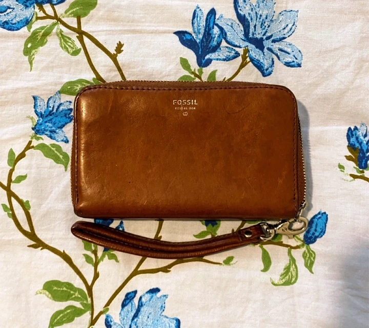 **Please note that this item has a faulty main zipper that does not close and minor imperfections. The zipper can be repaired through services such as Love Your Purse in Toronto.** This is a used Fossil wallet wristlet, perfect for keeping your essentials organized on the go. It features a zip-around closure and a convenient wrist strap. *Brand: Fossil *Model: Sydney zip clutch *Colour: Brown *Style: Wallet wristlet *Material: Faux leather *Hardware: Silver-tone *Accessories: Detachable wrist strap If you see this ad, it's still available. Pickup in Scarborough. Cash only.