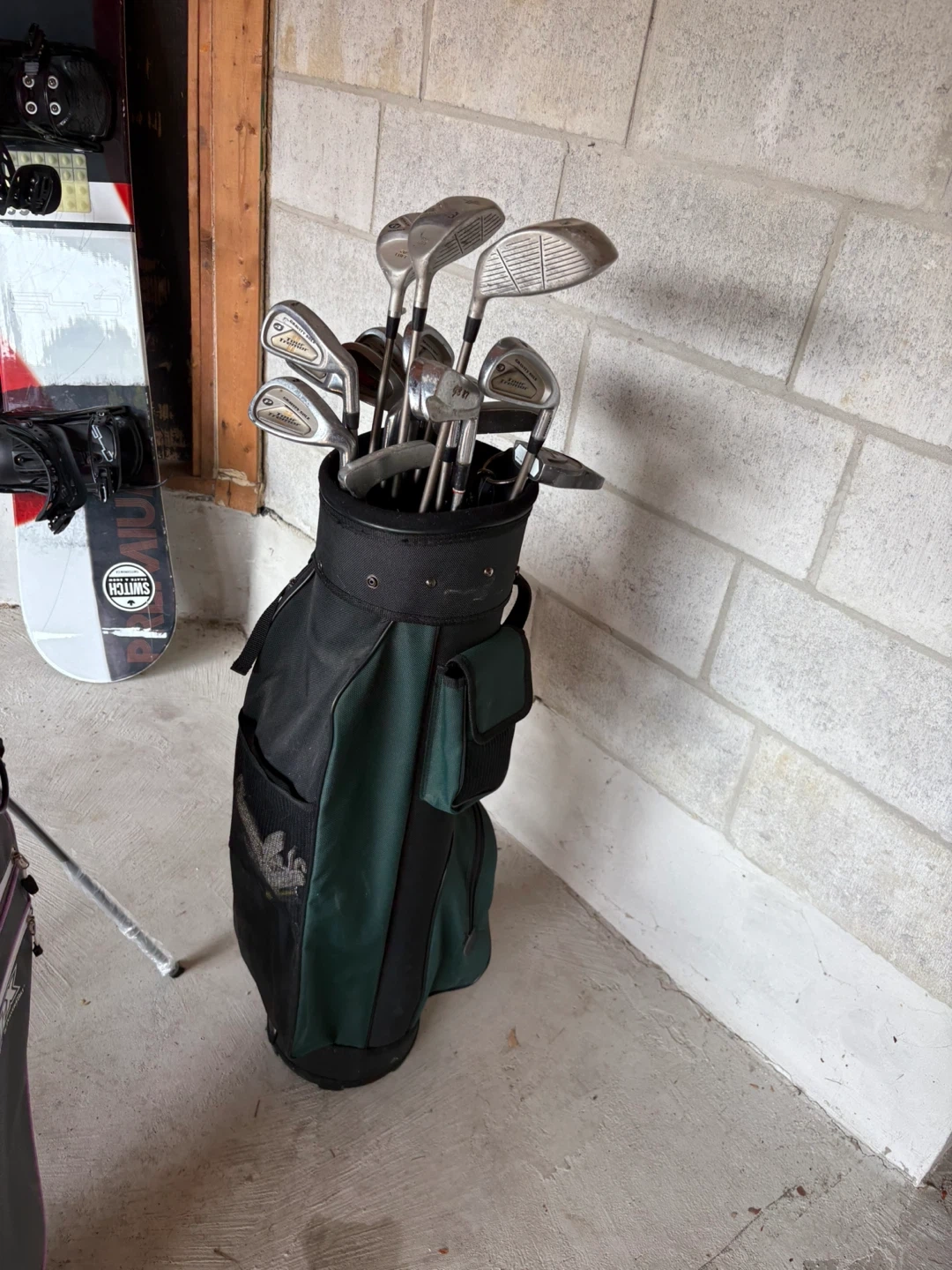 Selling a set of used golf clubs, complete with a golf bag! Perfect for someone looking to get into golf or upgrade their current set. The clubs show signs of use but are still in good working condition for a day on the course