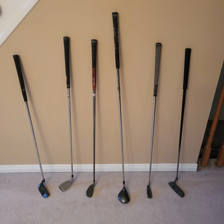 I'm hoping to sell these golf clubs! I've been cleaning out my basement and found these gems!💎 Irons: -Tiger Shark Vortex-8 iron-Regular flex=$10 -Steelhead X14-8 iron-Regular flex=$10 -Spalding Executive-9 iron-Believe medium flex=$10 Clubs: Titleist Pro Trajectory Club-Stiff flex-975 fairway wood=$30 Putters: Wilson Black Jack 304 Putter-double milled base=$15 Charger Goliath putter=$15 -Right handed -Gently used -High performance -Stainless steel -Pickup today!🚀 -Audley Rd and Bayly St!📍 -Checkout my reviews!⭐️ Let me know if you have any questions or offers. Thanks!