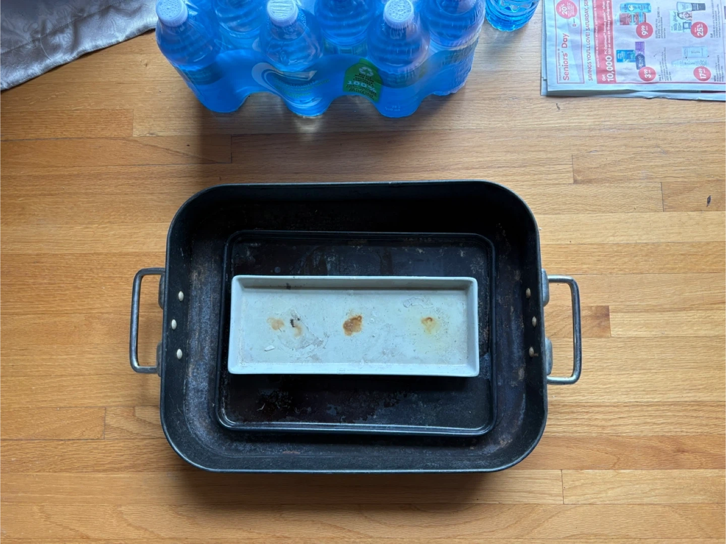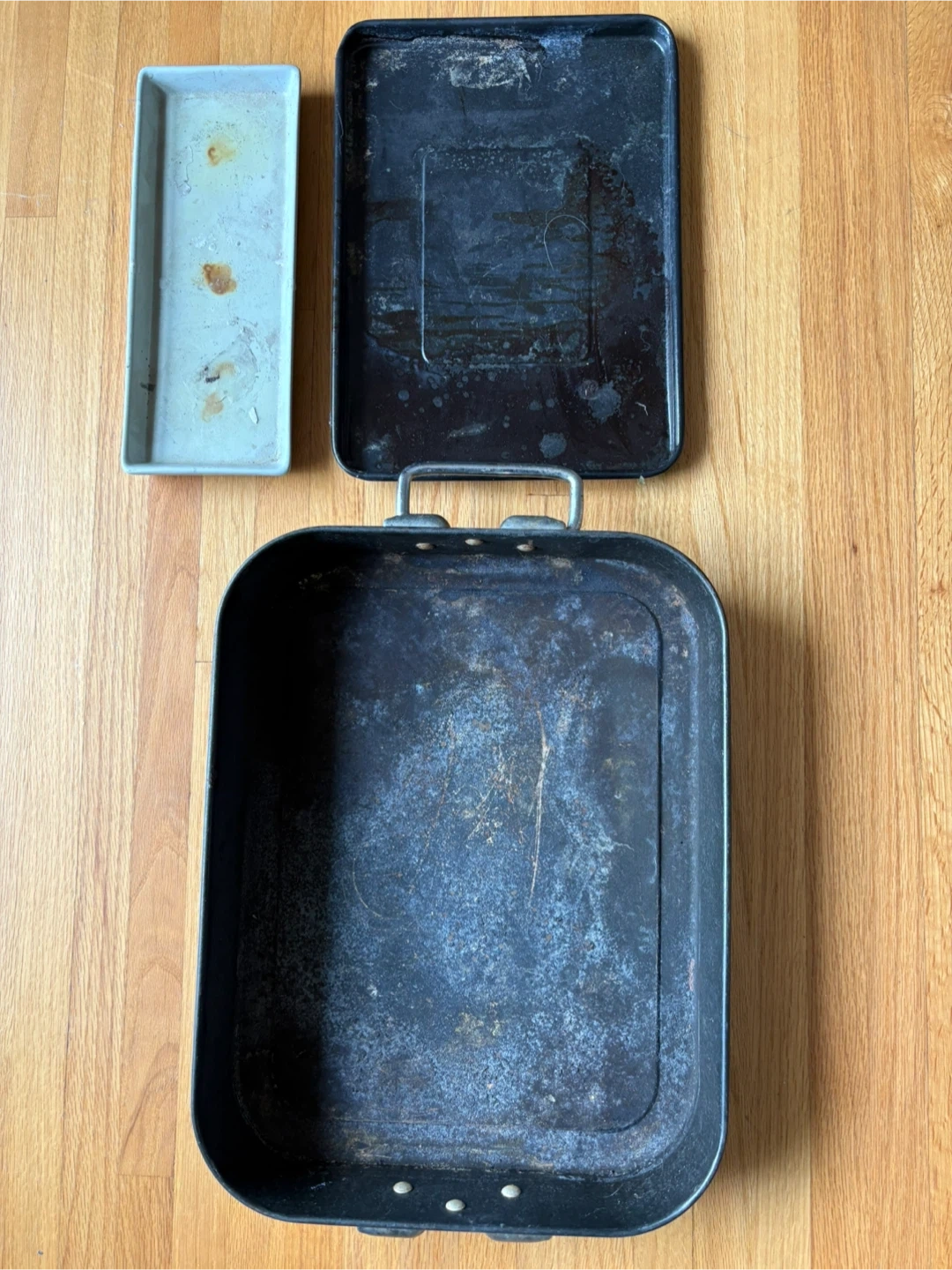 Selling a used roasting pan set. It includes the main roasting pan, a lid, and a smaller tray. Great for roasting meats and vegetables! Pick up at Morley trail NW