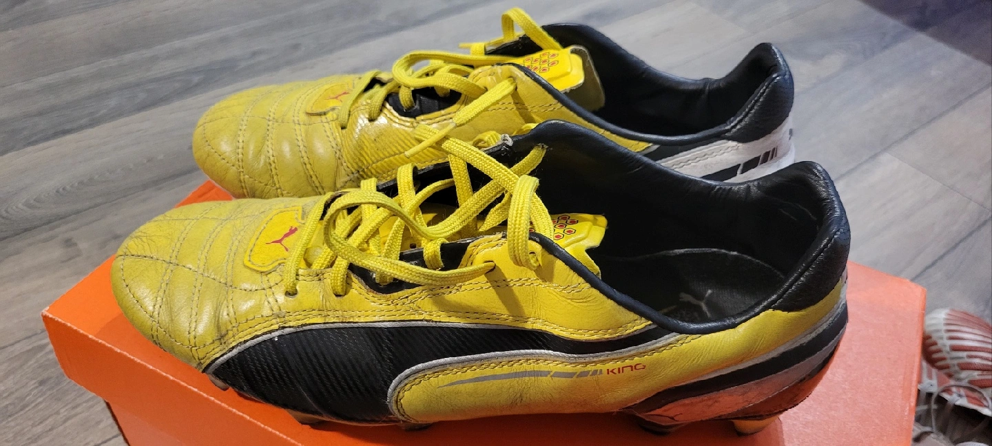 Selling a pair of Puma King soccer shoes. They are yellow and black. Please see photos for condition. US man size- 8