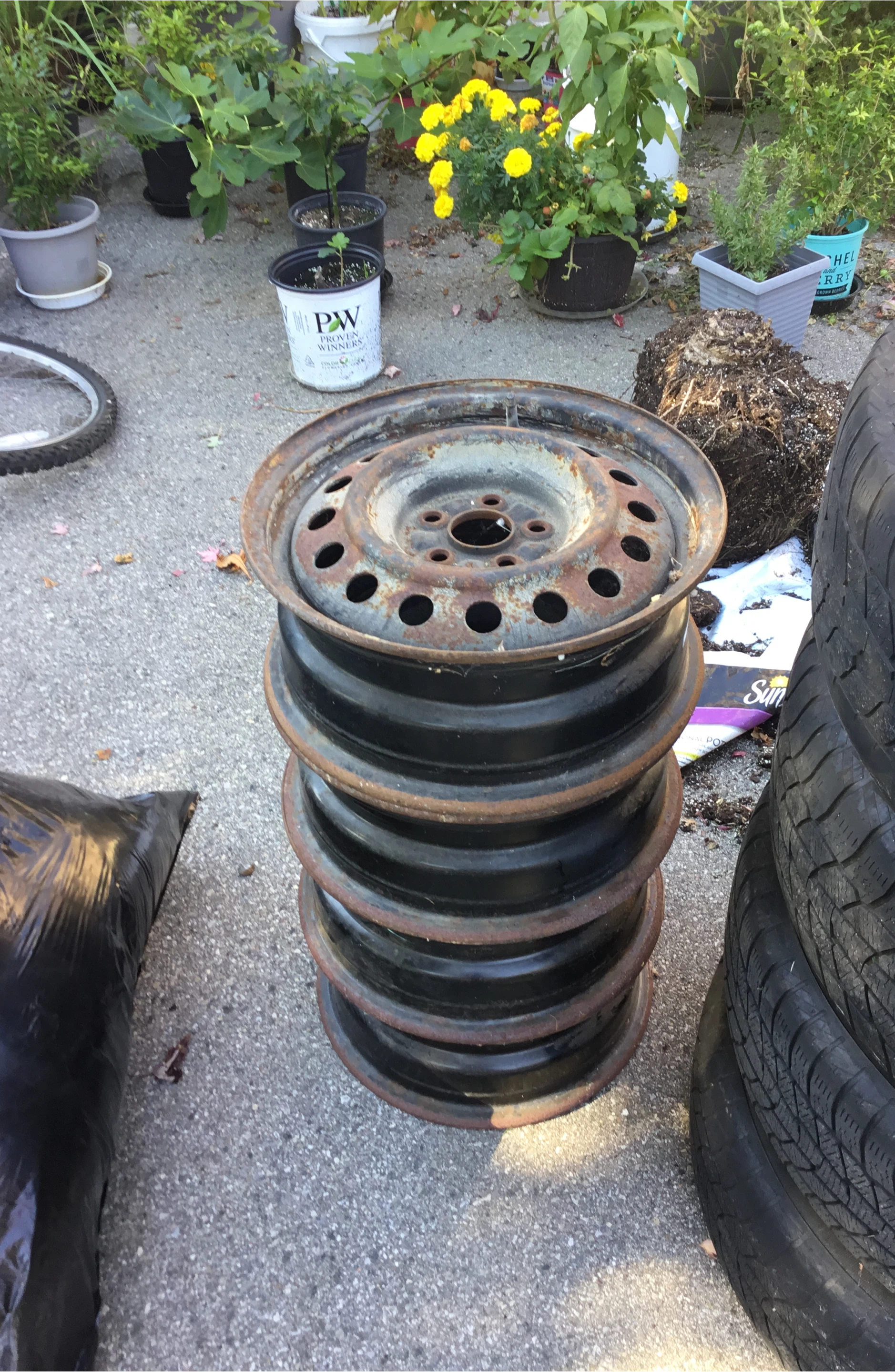 Selling a set of four used steel rims. They show some signs of wear and rust, but are still functional. Fits 2004 and newer Toyota Corolla. I had 185/65R15 tires on them.